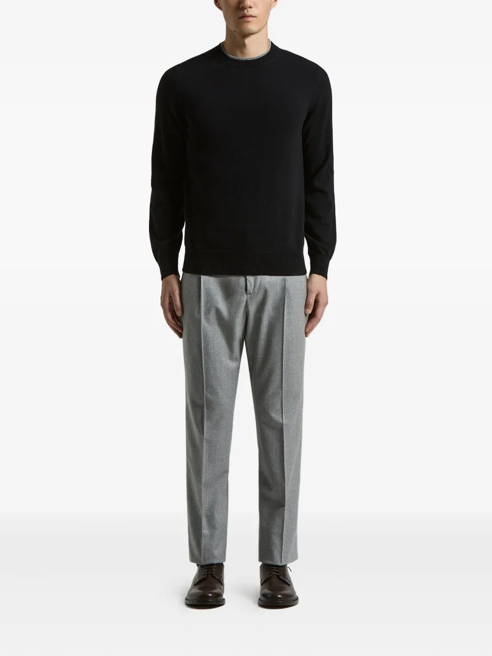 Синий свитер с круглым вырезом и длинными рукавами