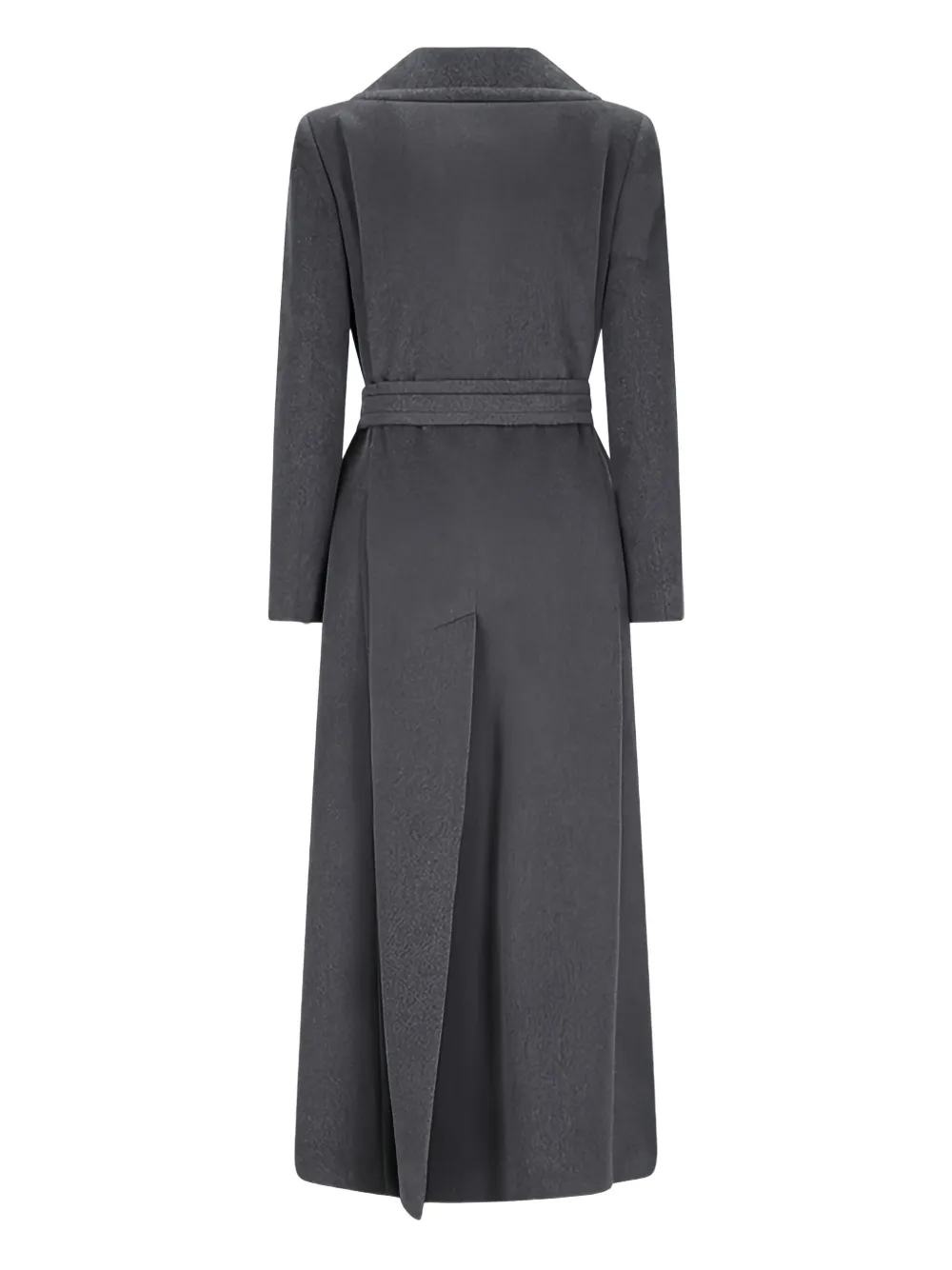 Серый с поясом, лацканами, длинными рукавами, двубортный