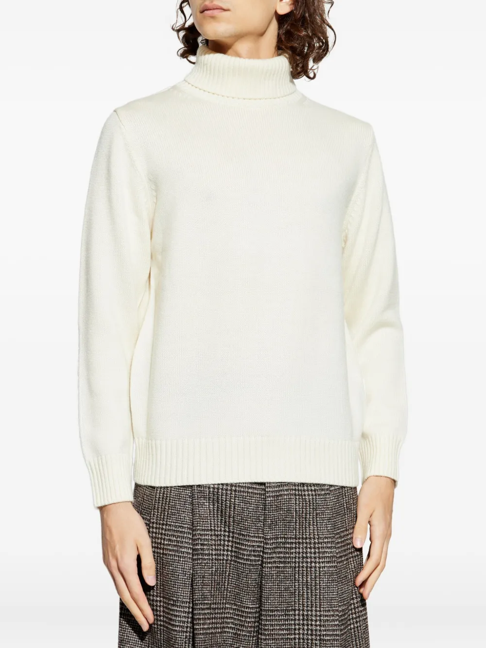 Кремово-белый свитер с высоким воротником и длинными рукавами