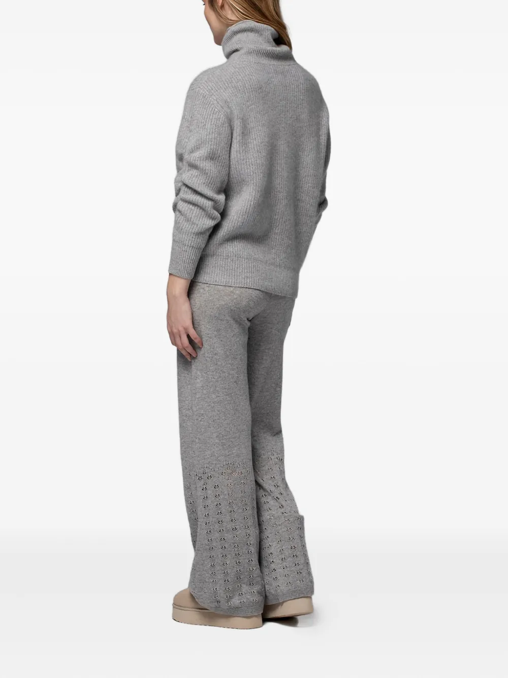 Серый в рубчик вязаный свитер с высоким воротником и длинными рукавами