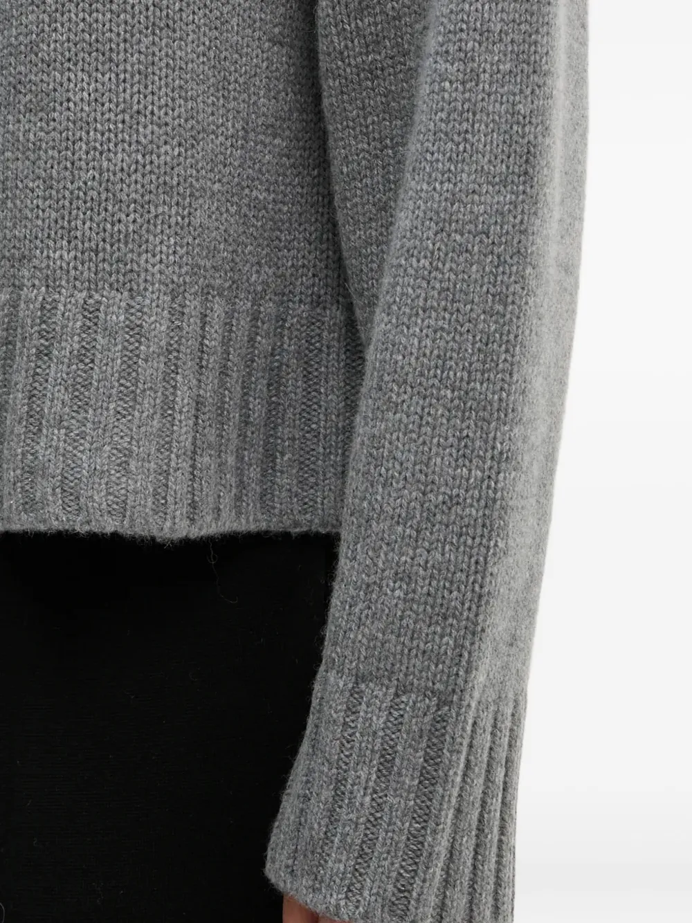 Темно-серый свитер с круглым вырезом, ребристой отделкой и длинными рукавами