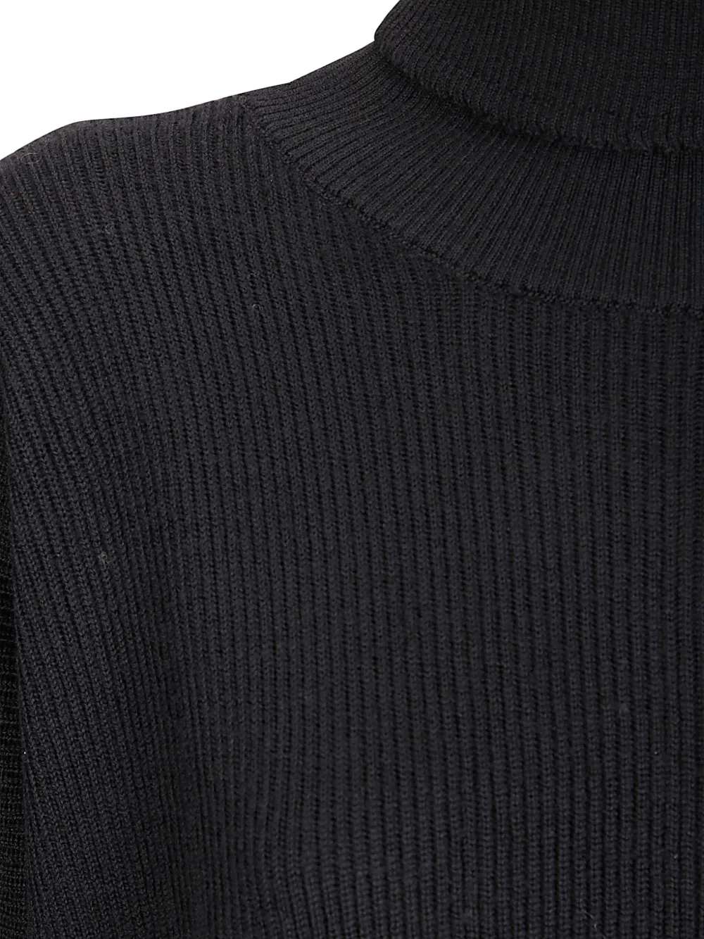 Черная вязаная водолазка в рубчик с длинными рукавами и нашивкой с логотипом