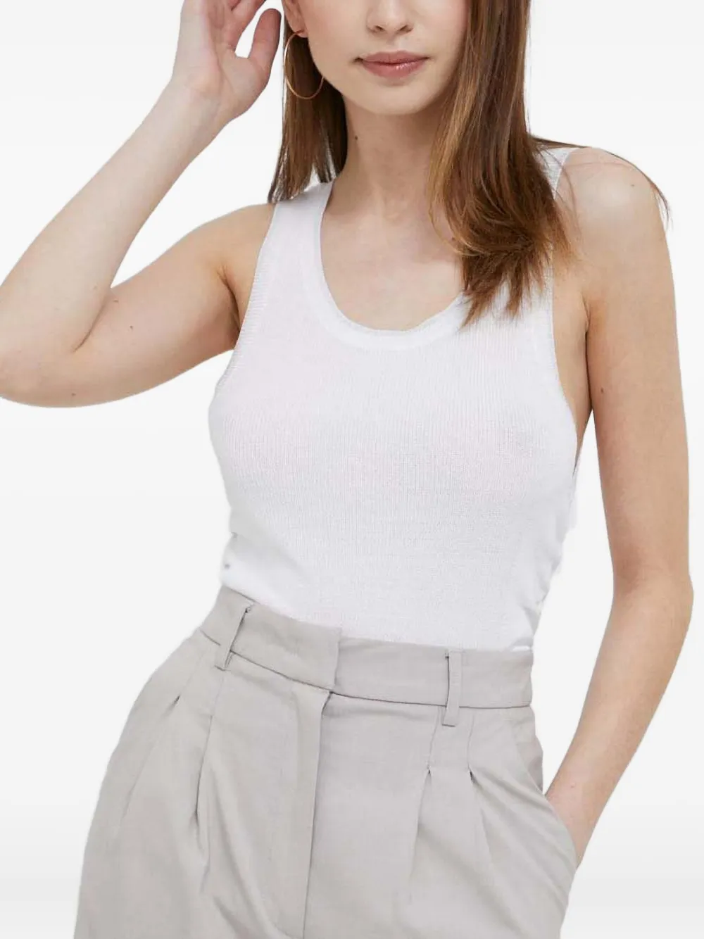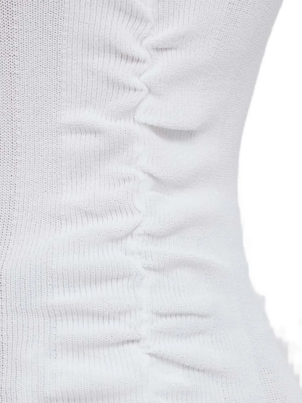 Белый в рубчик трикотажный топ без рукавов с круглым вырезом и сборкой по бокам