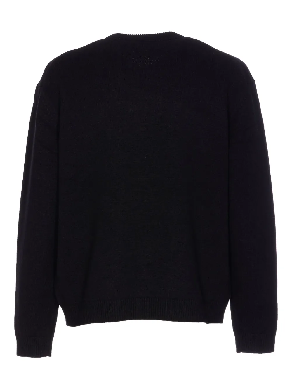 Черный джемпер с интарсией в виде головы лисы, с круглым вырезом и длинными рукавами