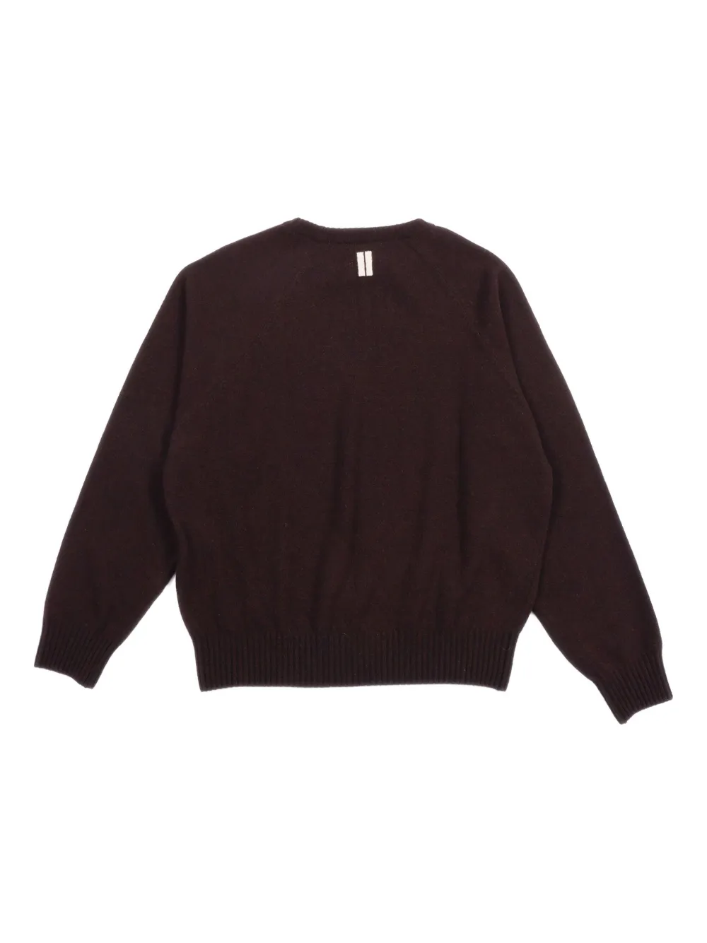 Темно-коричневый круглый вырез, длинные рукава, вязаный рубчик, мелкая вязка, прямой низ