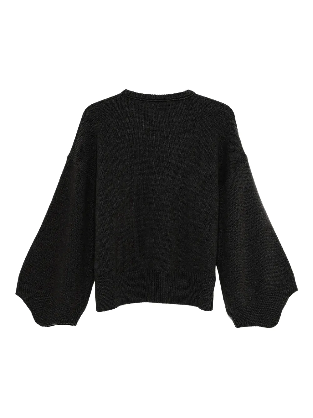 Черный круглый вырез, широкие рукава, вязаная фактура, ребристый край, ребристые манжеты
