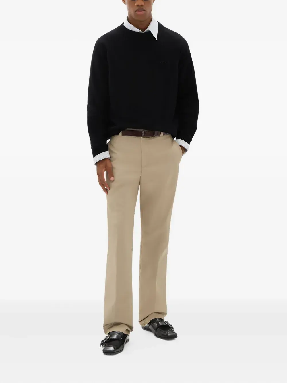 Черный тональный логотип, круглый вырез, длинные рукава, ребристый низ, ребристые манжеты
