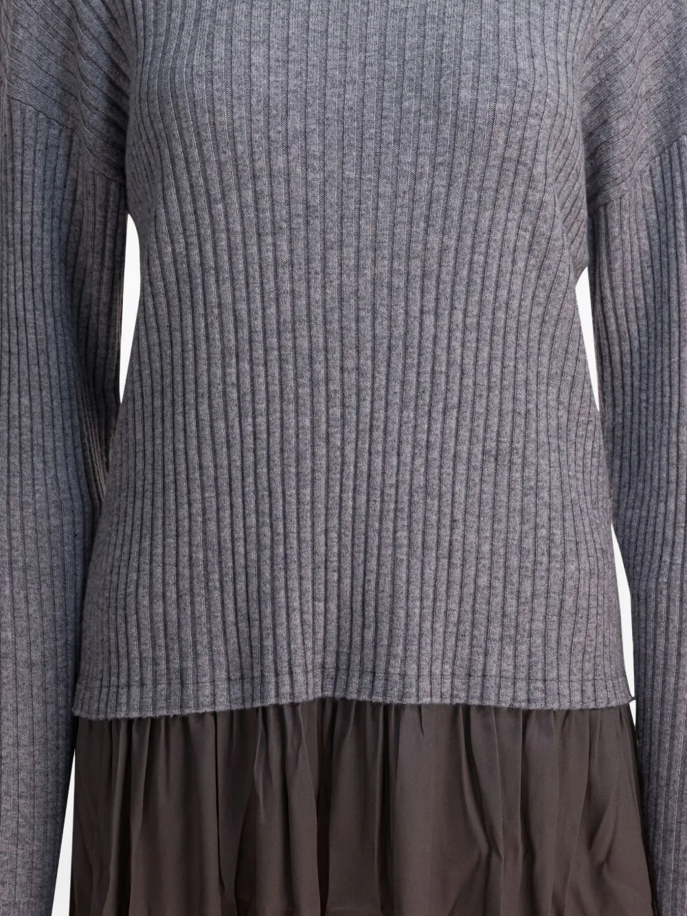 Серое ребристое вязаное платье с воротником-гольф, длинными рукавами и плиссированной юбкой