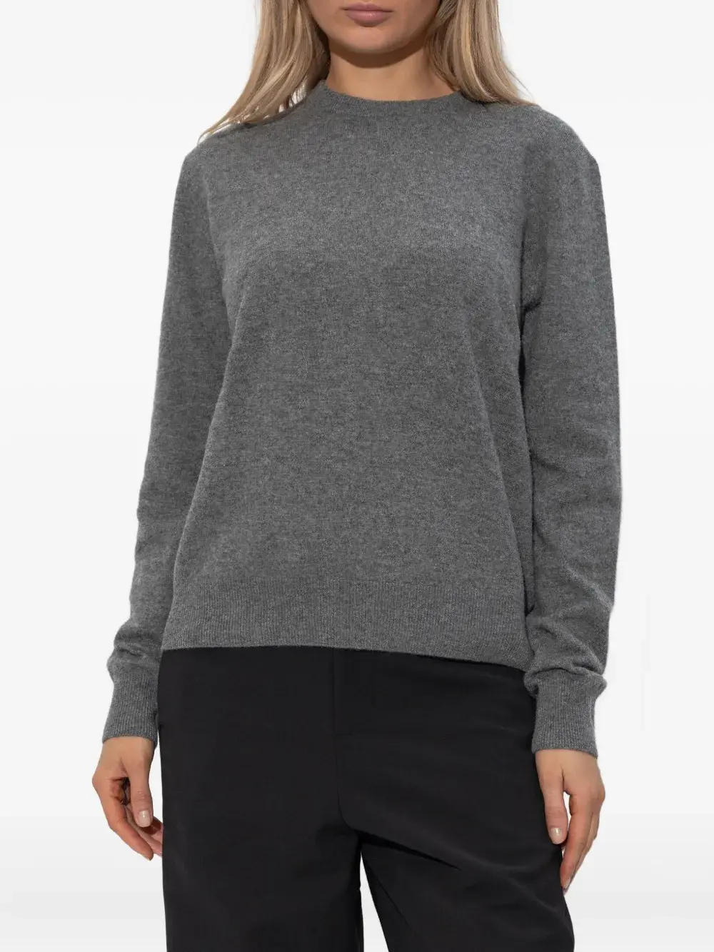Серый джемпер с круглым вырезом, длинными рукавами, ребристыми краями и манжетами, мелкая вязка