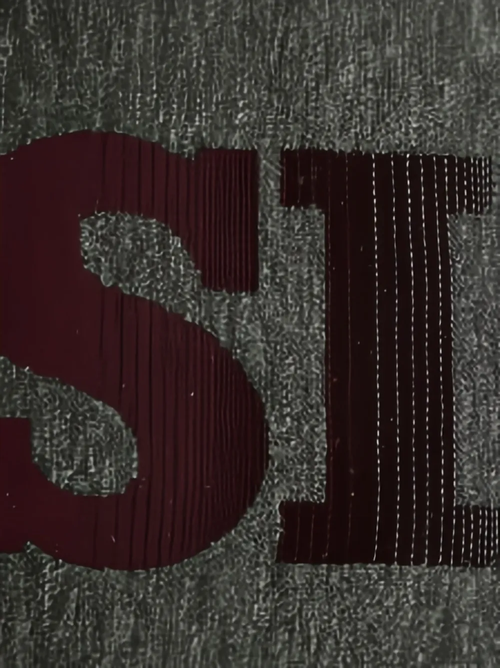 бордовый логотип, выполненный в технике интарсия