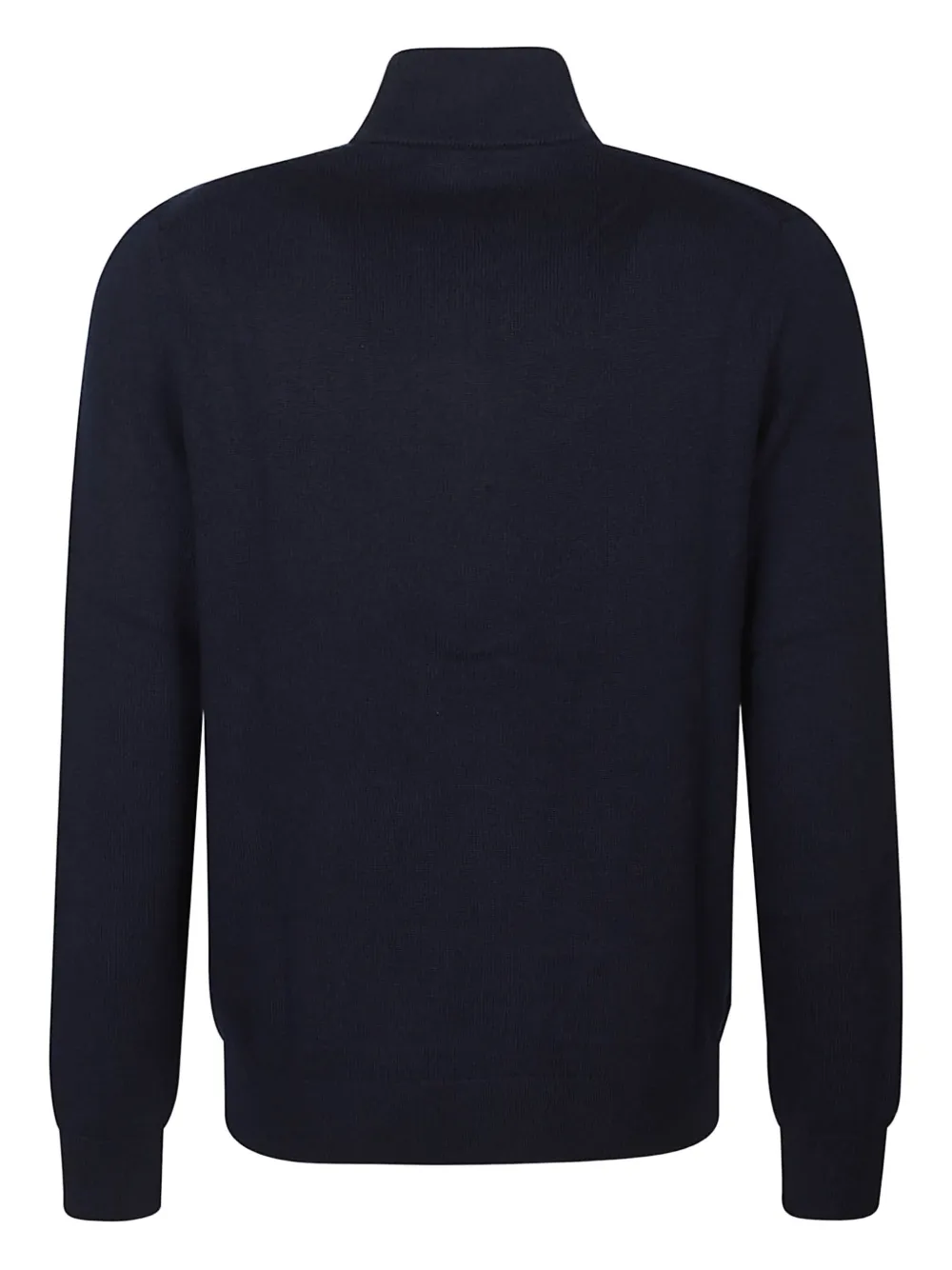 Темно-синий цвет, застежка-молния, высокий воротник, длинные рукава, трикотажные (вязаные) манжеты и низ