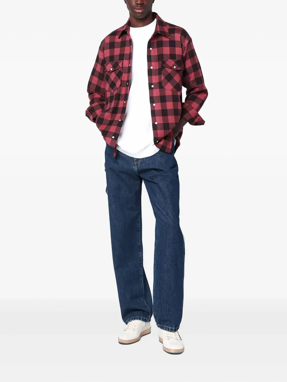 Антик-розовая рубашка в клетку, нагрудные карманы, длинные рукава, застежка на пуговицы, манжеты на пуговицах
