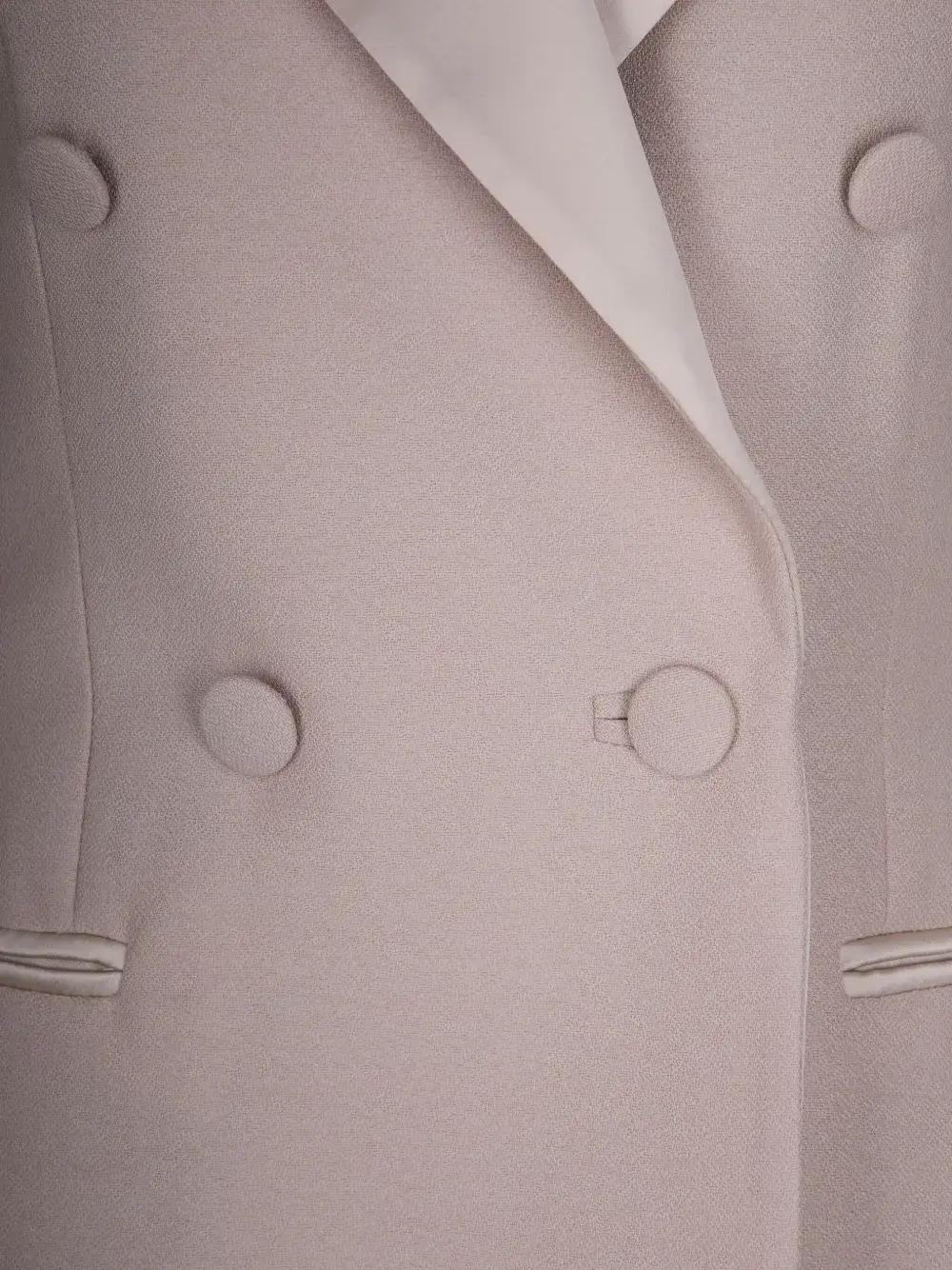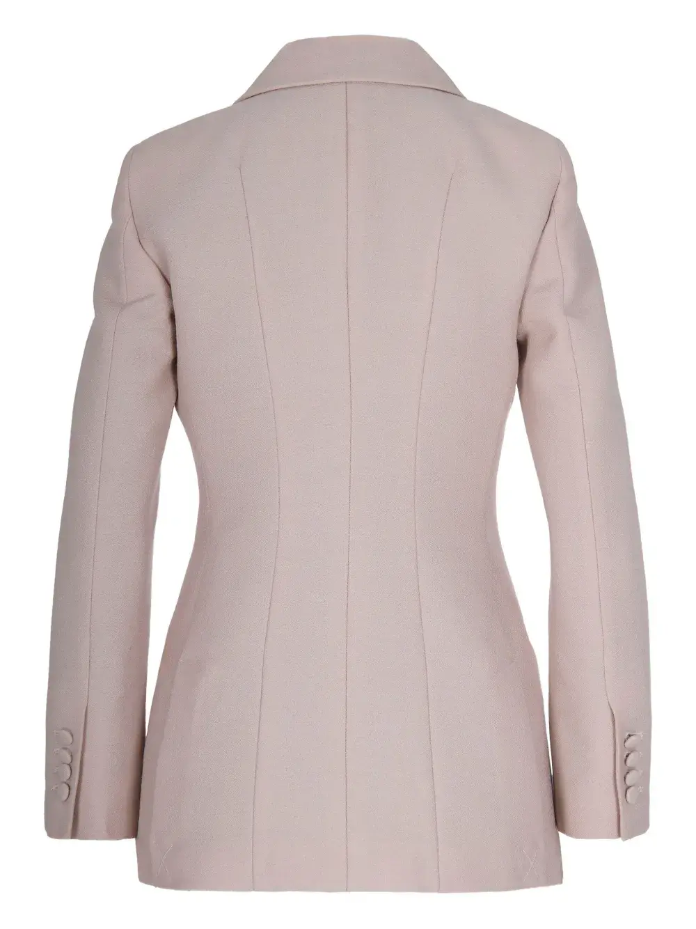 Розовый двубортный пиджак с застежкой на пуговицы, лацканами с острыми концами, прорезным карманом и клапанами на карманах