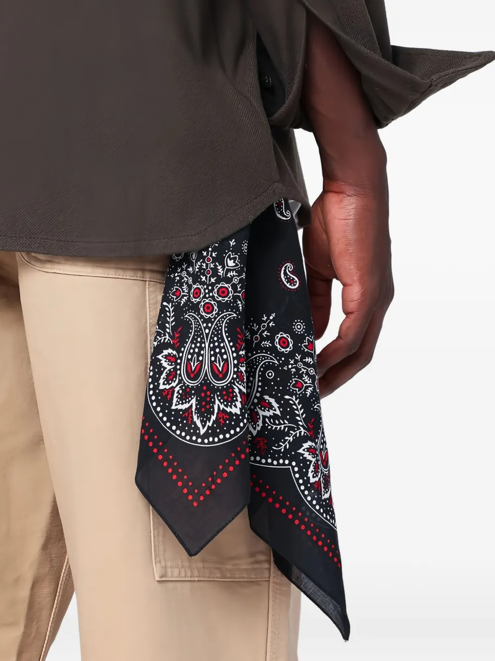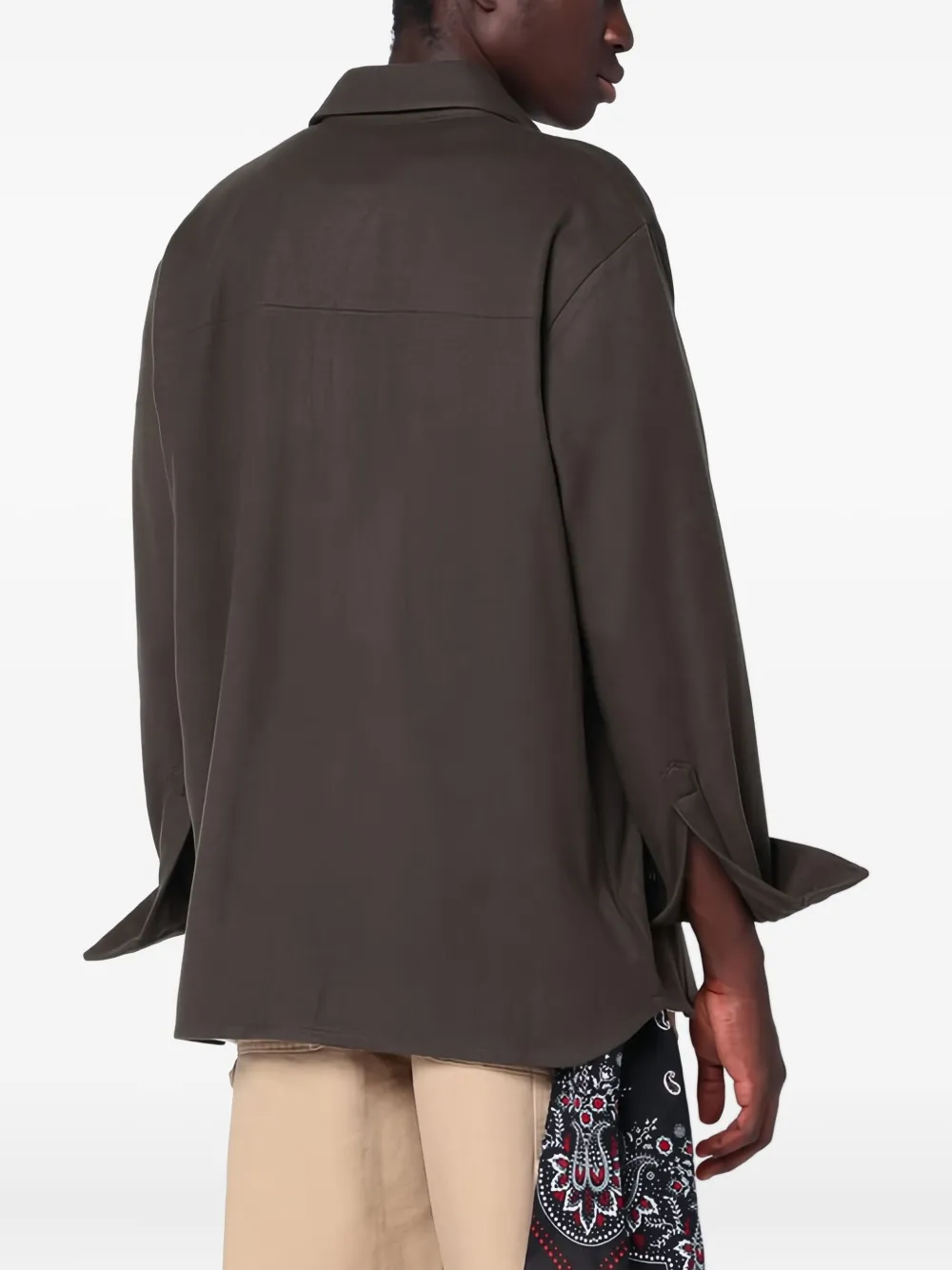 Милитаристский зеленый цвет, длинные рукава, застежка на пуговицы, два нагрудных кармана, манжеты на пуговицах, отложной воротник