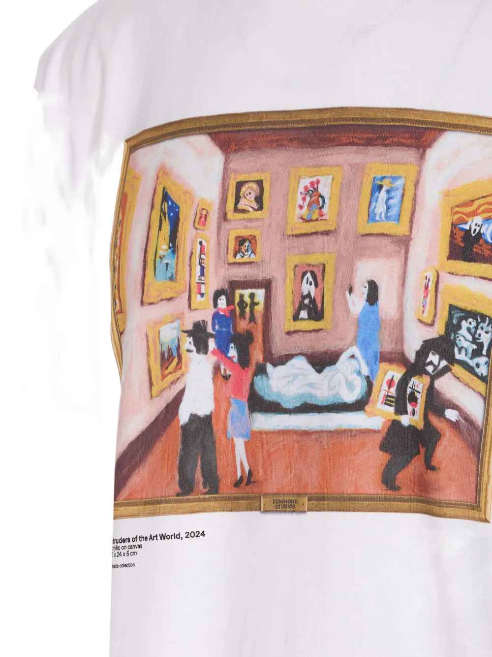 Белый свитшот с принтом "Intruders of the Art World" и круглым вырезом