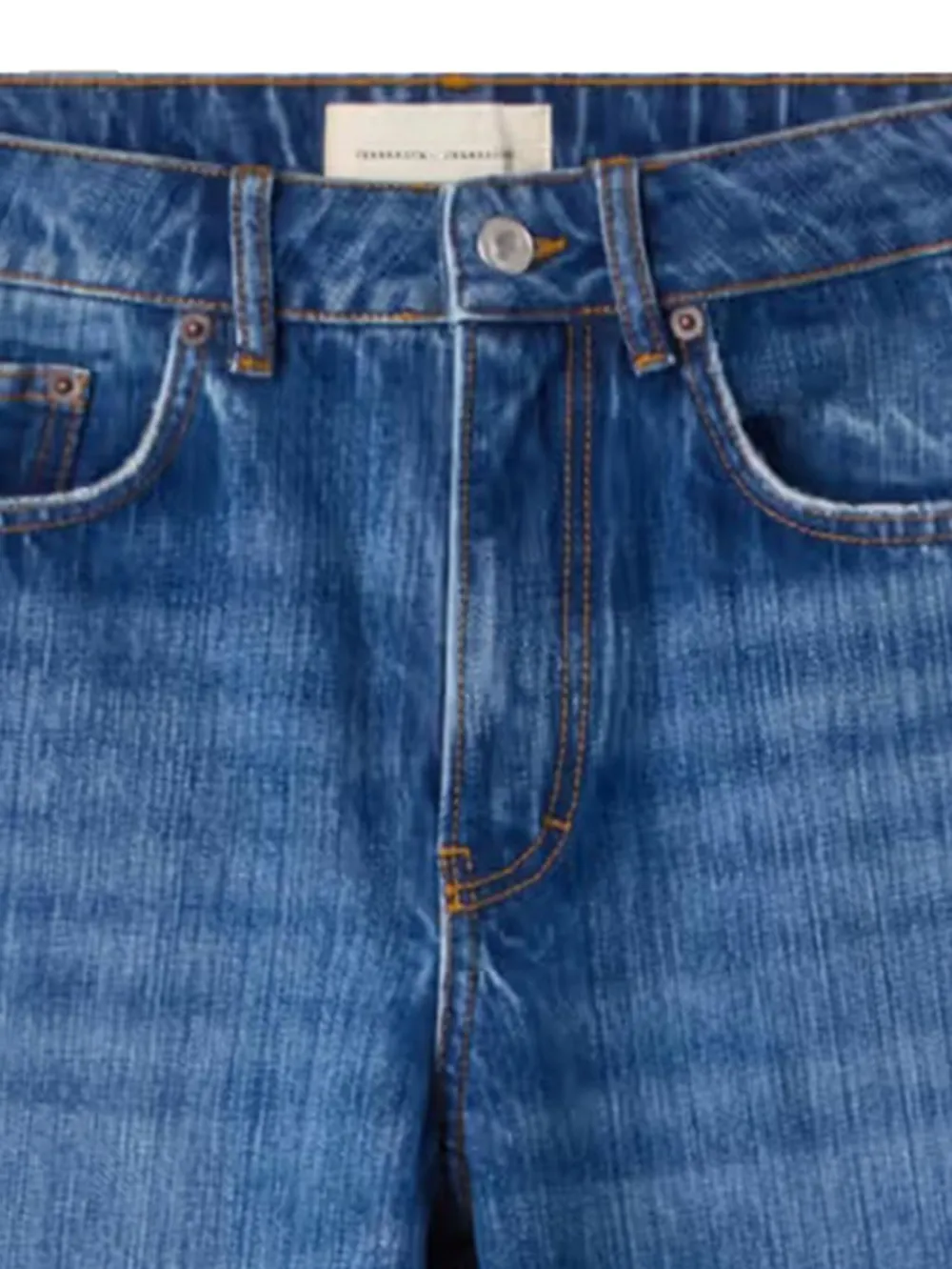 Средне-синие, смесь хлопка, шлевки для пояса, пять карманов, отделка строчкой