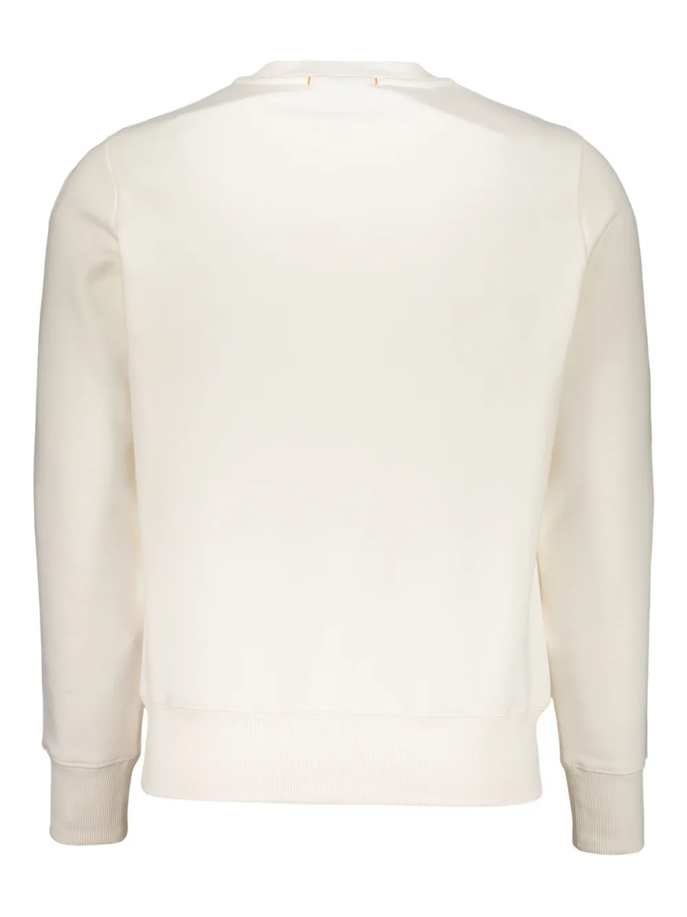 Длинные рукава, ребристый край, ребристые манжеты, ребристый круглый вырез, нашивка на рукаве
