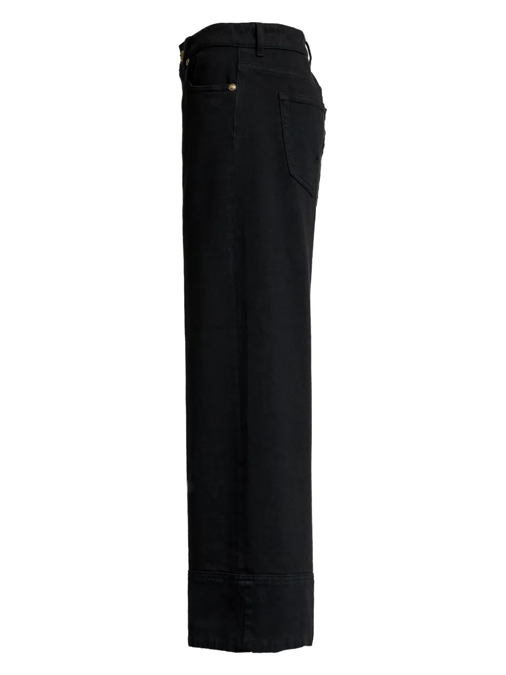 Черные шлевки для ремня, пять карманов, застежка на молнии, широкий крой штанин, высокий подгиб