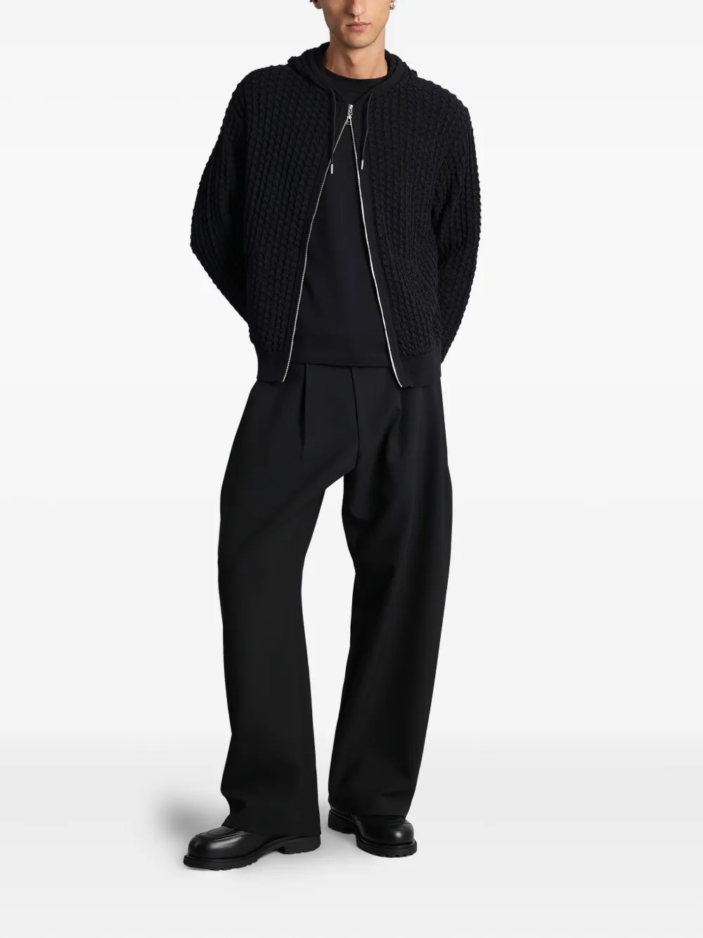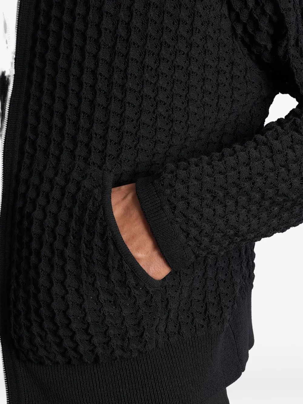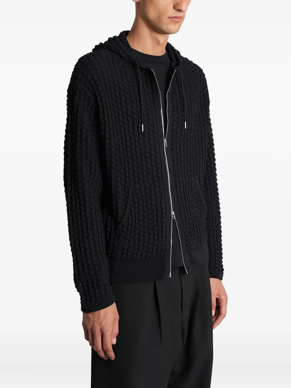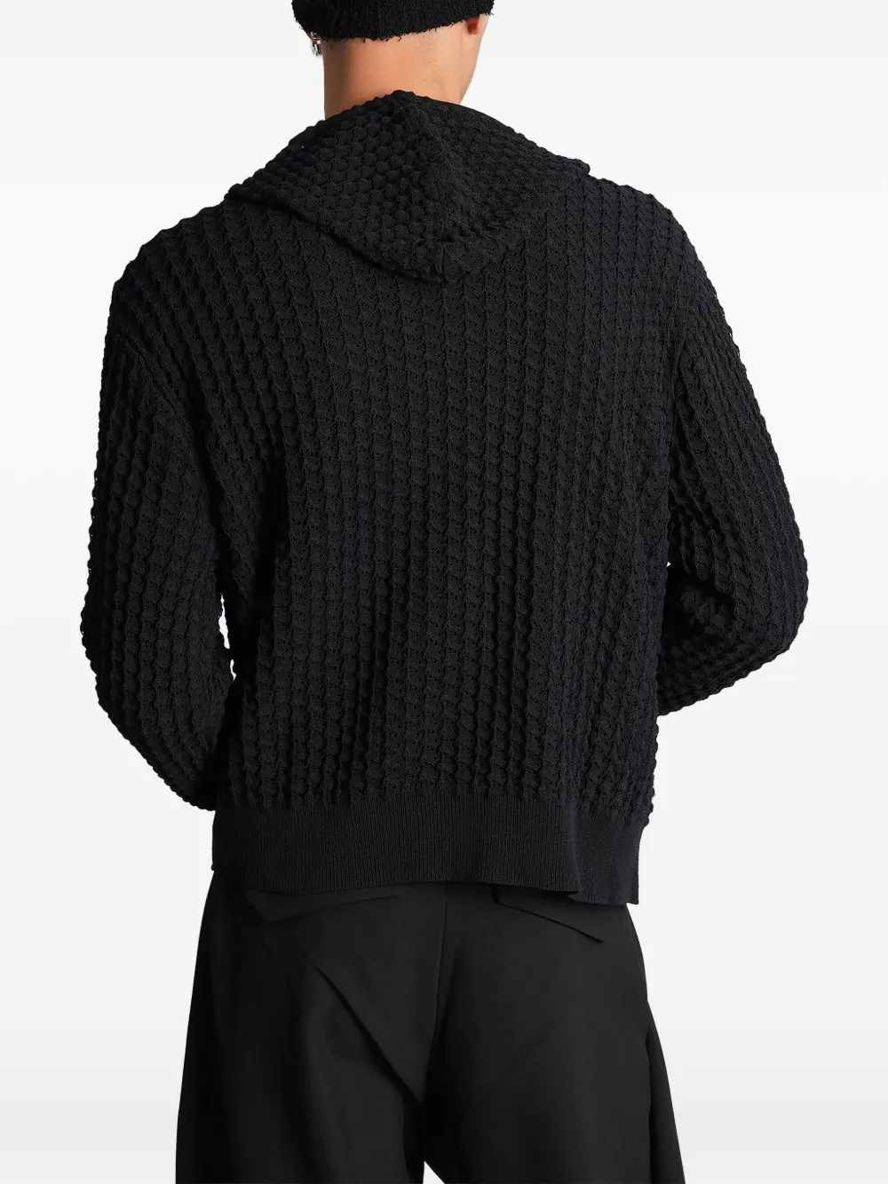 Черная фактурная вязаная толстовка с капюшоном, застежкой-молнией, ребристыми краями и боковыми карманами
