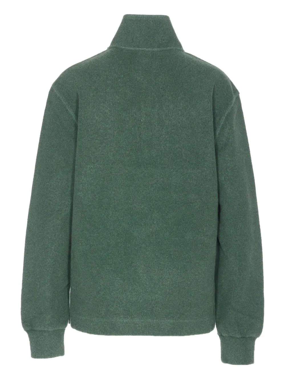Зеленый, застежка на половине длины молнии, длинные рукава, ребристый низ, ребристые манжеты, высокий воротник