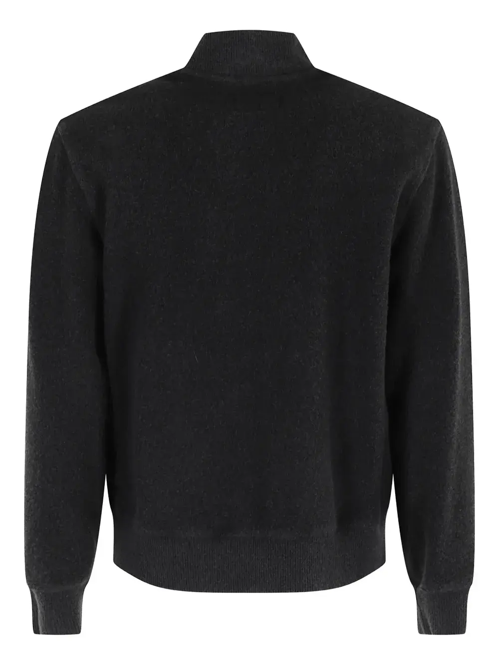 Черная куртка с застежкой-молнией спереди, высоким воротником, прорезными карманами, ребристыми манжетами и ребристым подолом