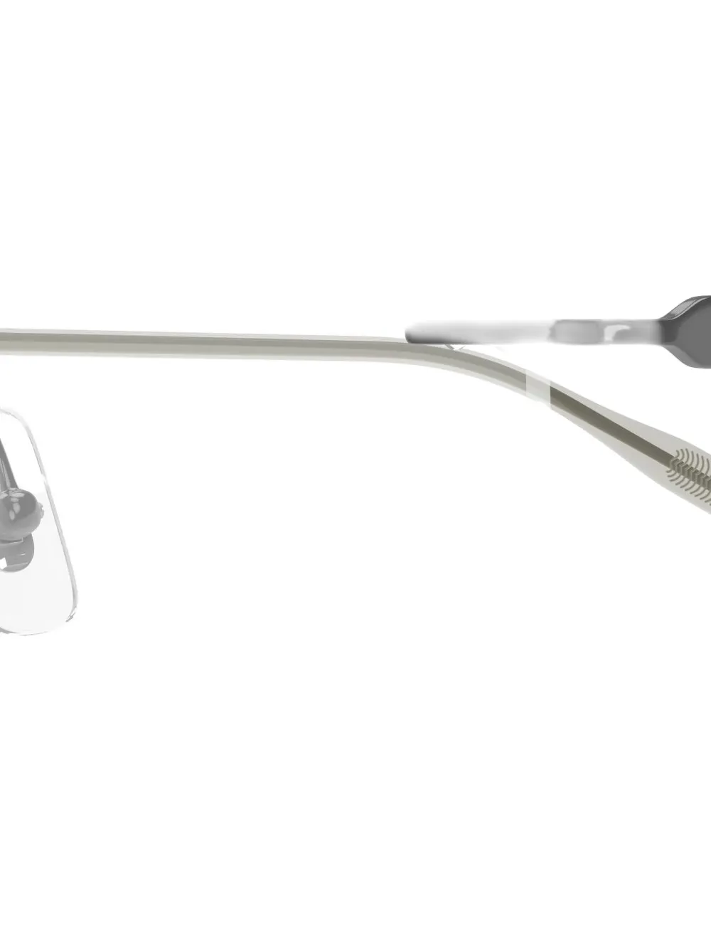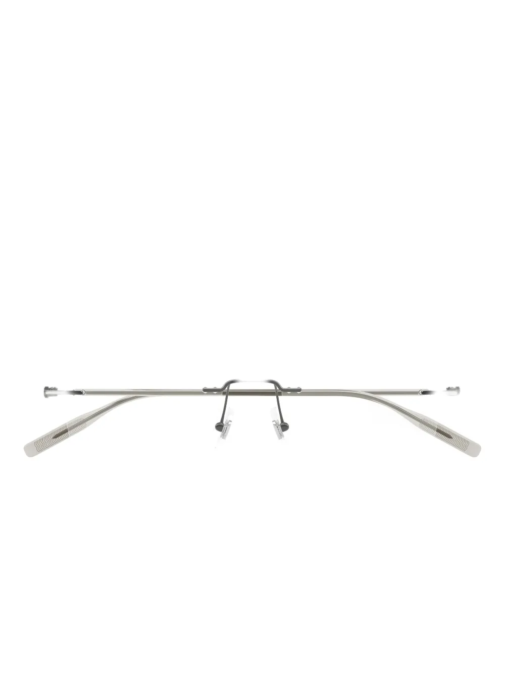 Серые очки с прямоугольной оправой без оправы, с носоупорами, металлическими дужками и фактурными наконечниками. Все очки на FARFETCH продаются как оправа без диоптрий. Очки поставляются с защитным футляром.