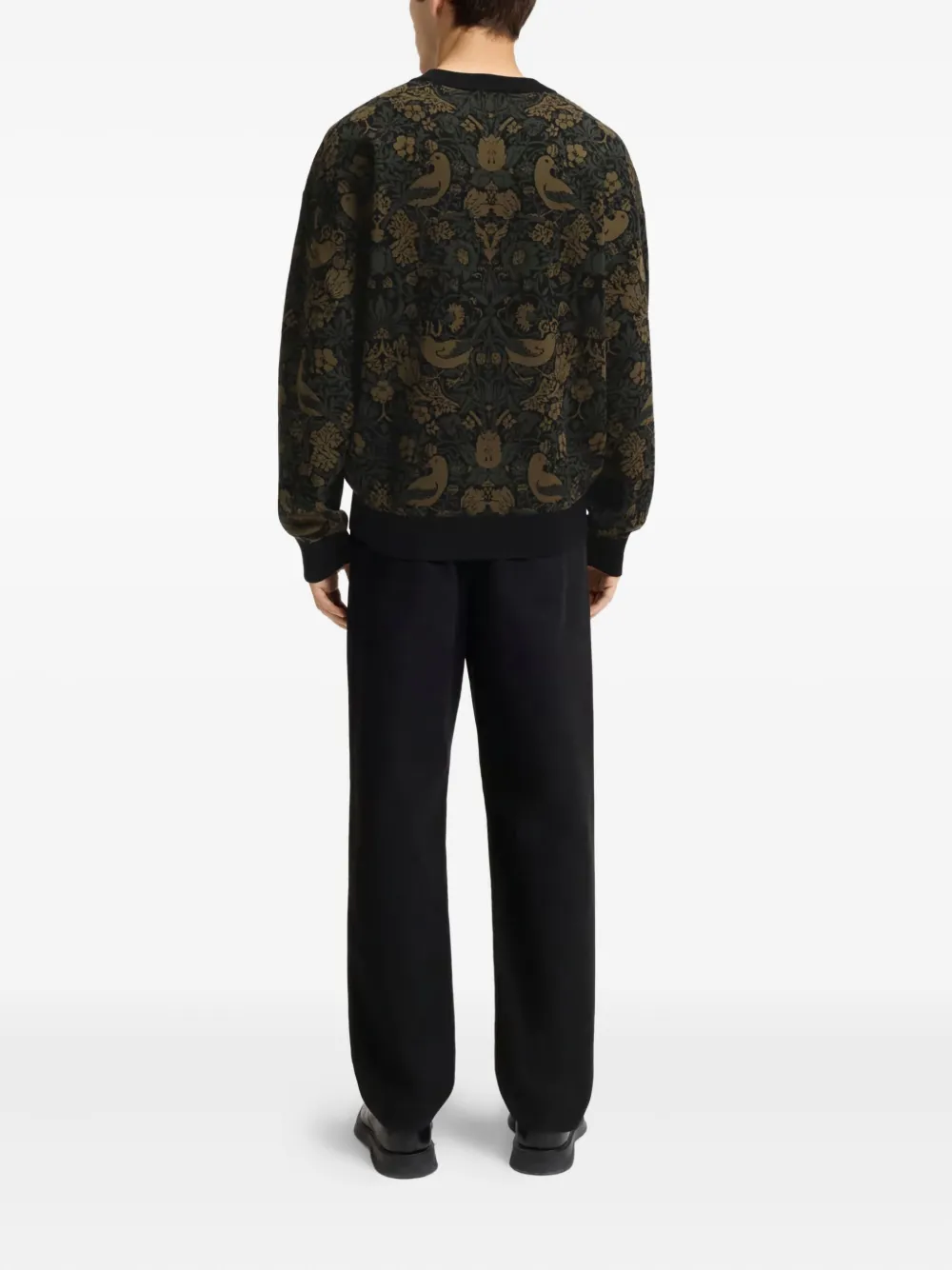 Черный с узором, круглый вырез, длинные рукава, ребристые манжеты и край