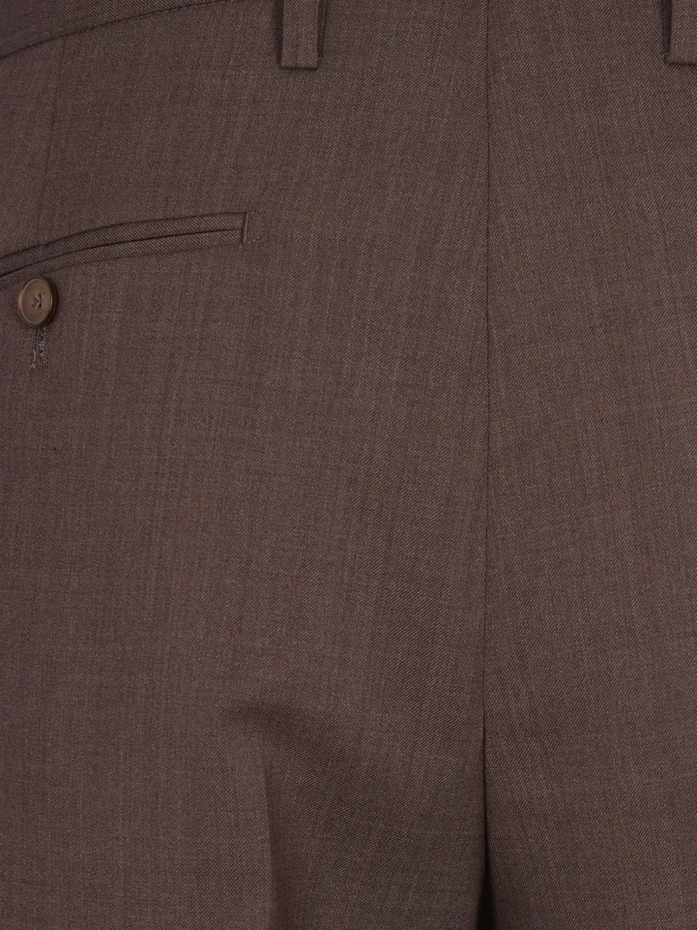 Коричневые, застежка на пуговицу, шлевки для ремня, складки сзади, прорезной карман