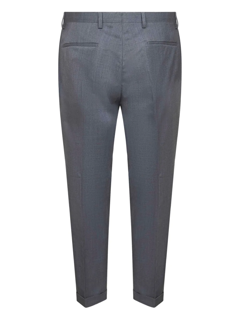 Серые шлевки для ремня, боковые карманы, задние прорезные карманы, одна складка, подогнутые края низа