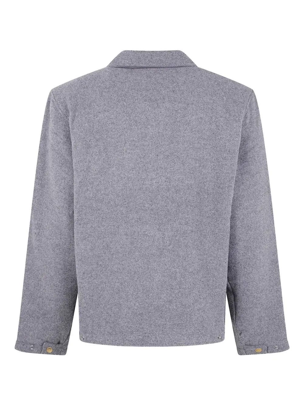 Графитово-серый цвет, застежка-молния, нагрудный карман, воротник с острыми концами, боковые прорезные карманы, манжеты на пуговицах