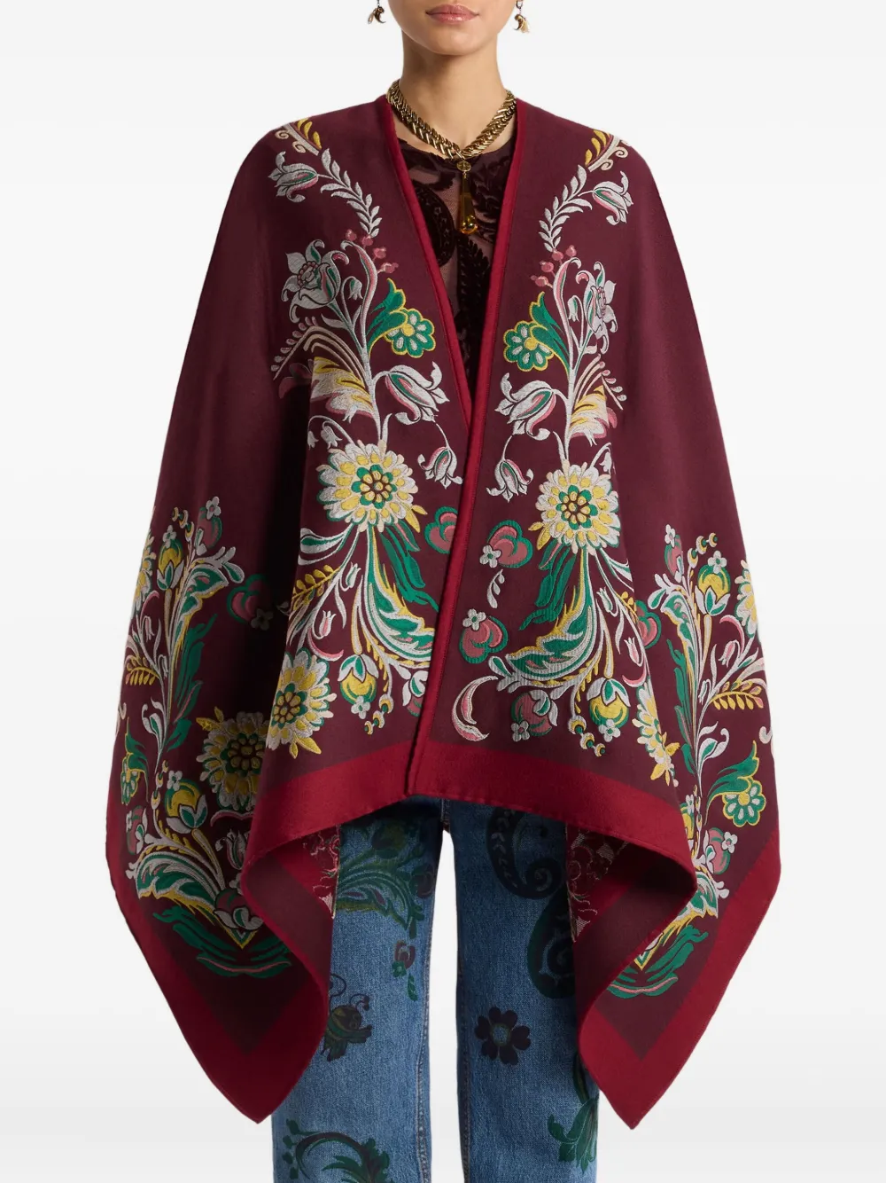 Кейп с цветочным узором Etro, красный