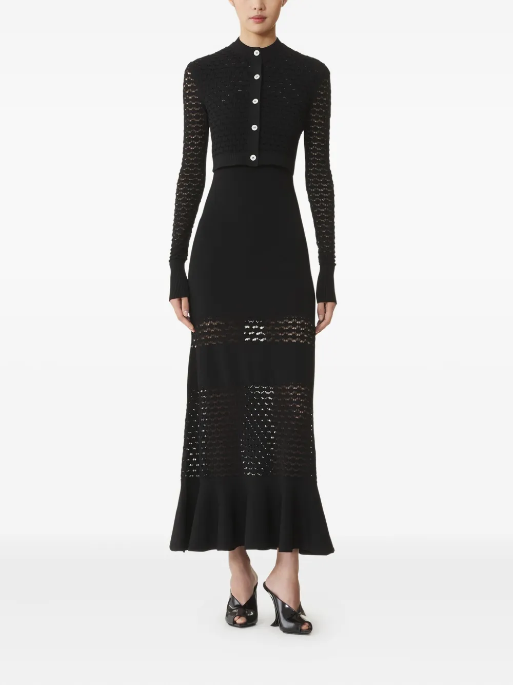 Черный ажурный трикотаж, застежка на пуговицы, длинные рукава, круглый вырез