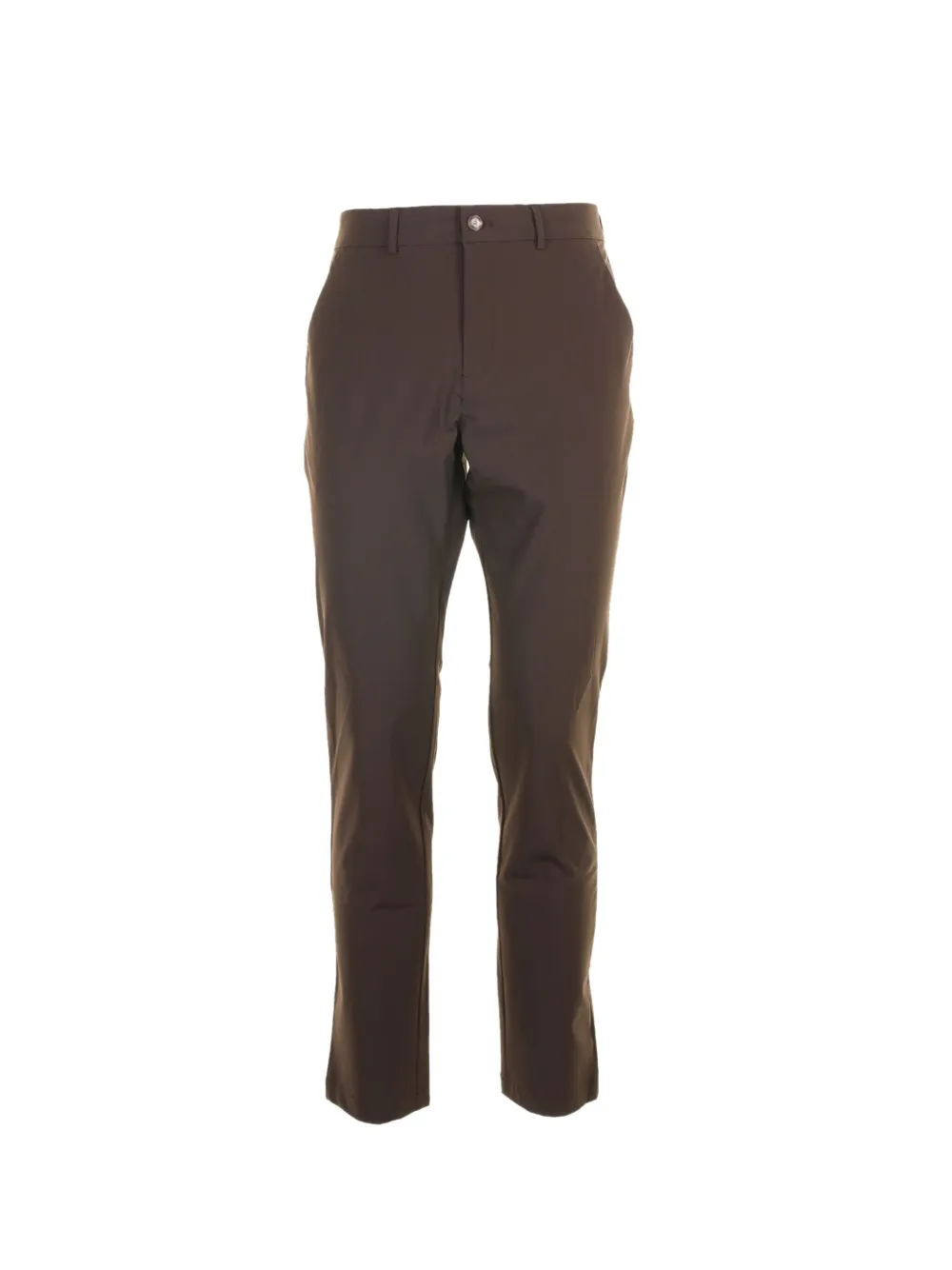 Темно-коричневый, застегивается на пуговицу, шлевки для ремня, боковые и задние карманы, застежка-гульфик с потайной молнией