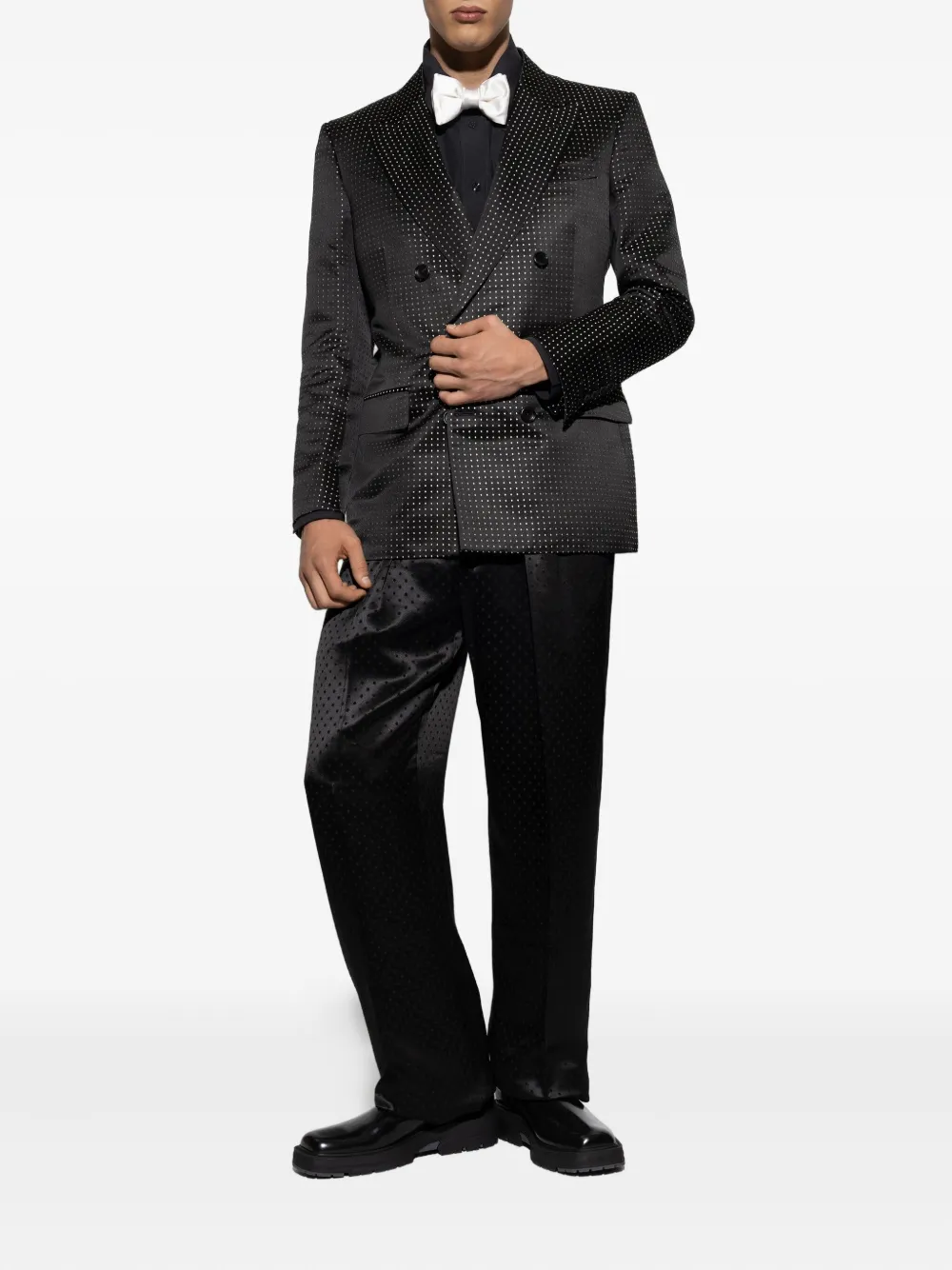 Двубортный пиджак в горошек Tom Ford, черный