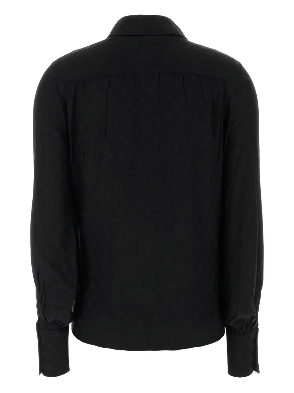 Черный, застегивается на пуговицы, длинные рукава, манжеты на пуговицах, смесь шелка