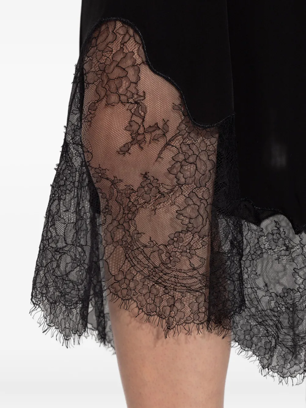 Черные кружевные вставки, длинные рукава, длина миди, круглый вырез, застежка-молния сзади