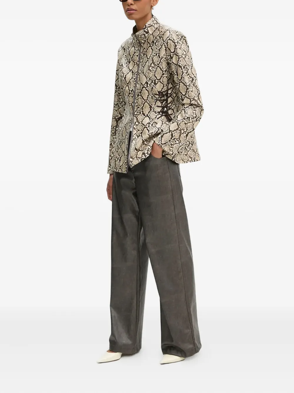 Бомбер на молнии со змеиным принтом Résumé, коричневый