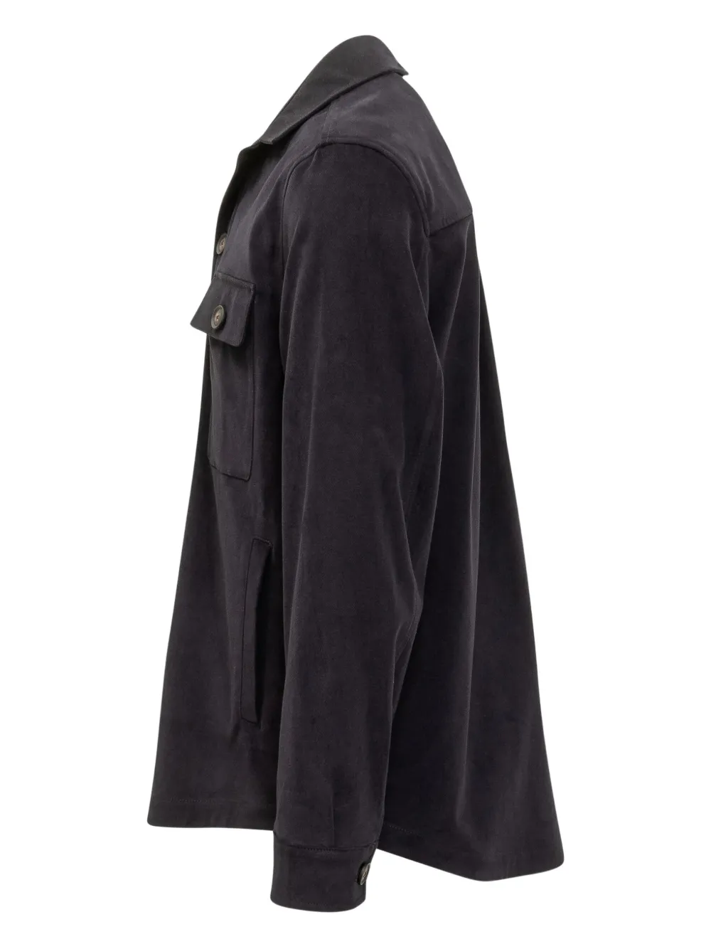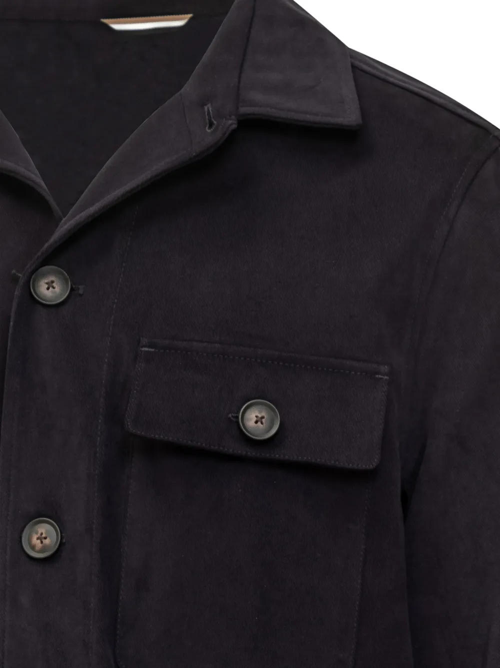 Темно-синий, застежка на пуговицы, классический воротник, накладные карманы с клапанами на пуговицах, длинные рукава, манжеты на пуговицах