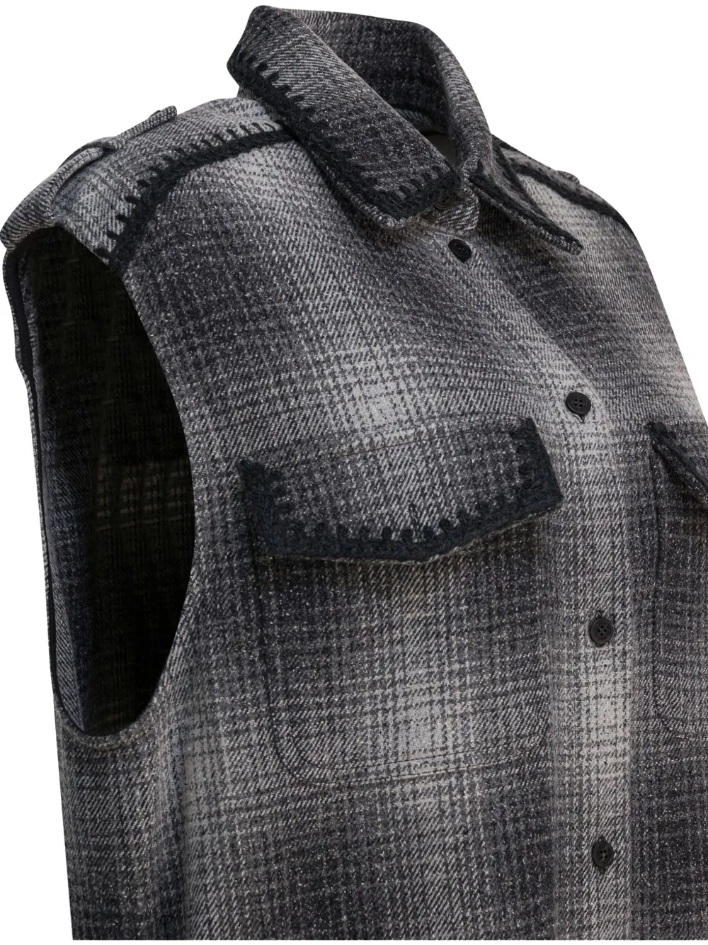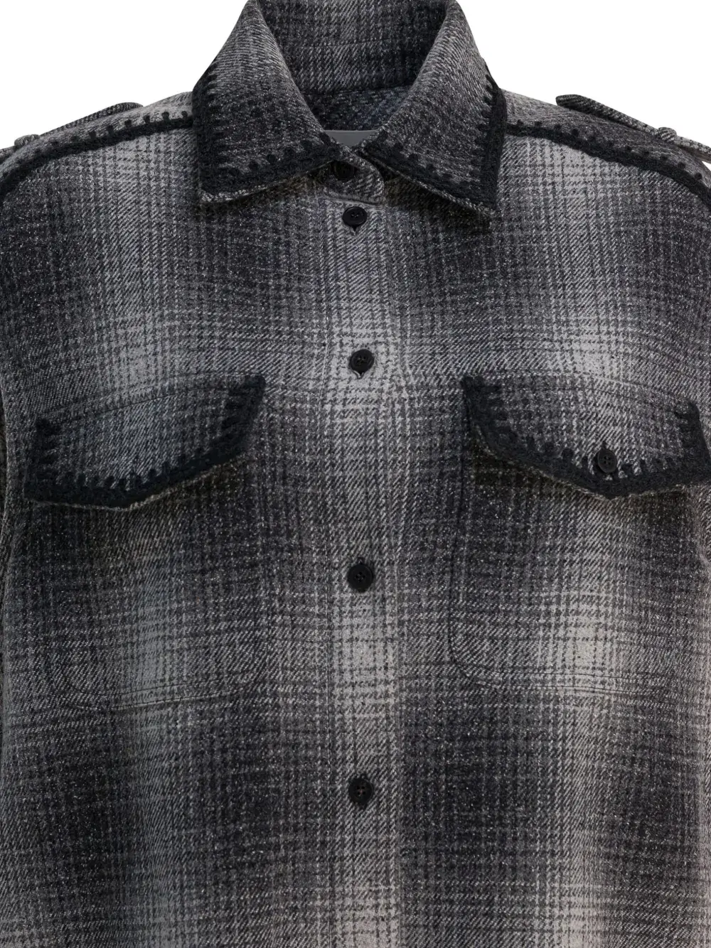 Черно-серая клетка, классический воротник, два нагрудных кармана