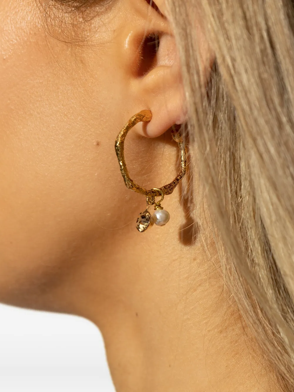 Подвеска-сердце с янтарной жемчужиной, текстурированная отделка, застежка-гвоздик, асимметричный дизайн. Обычное ежедневное использование и воздействие внешних факторов могут снизить блеск драгоценных камней и поверхностей из золота. Для ухода используйте специальные неабразивные средства, предназначенные для чистки ювелирных изделий. Жемчуг следует надевать последним утром и снимать первым вечером. Избегайте контакта с духами или кремами, очищайте только мягкой тканью.