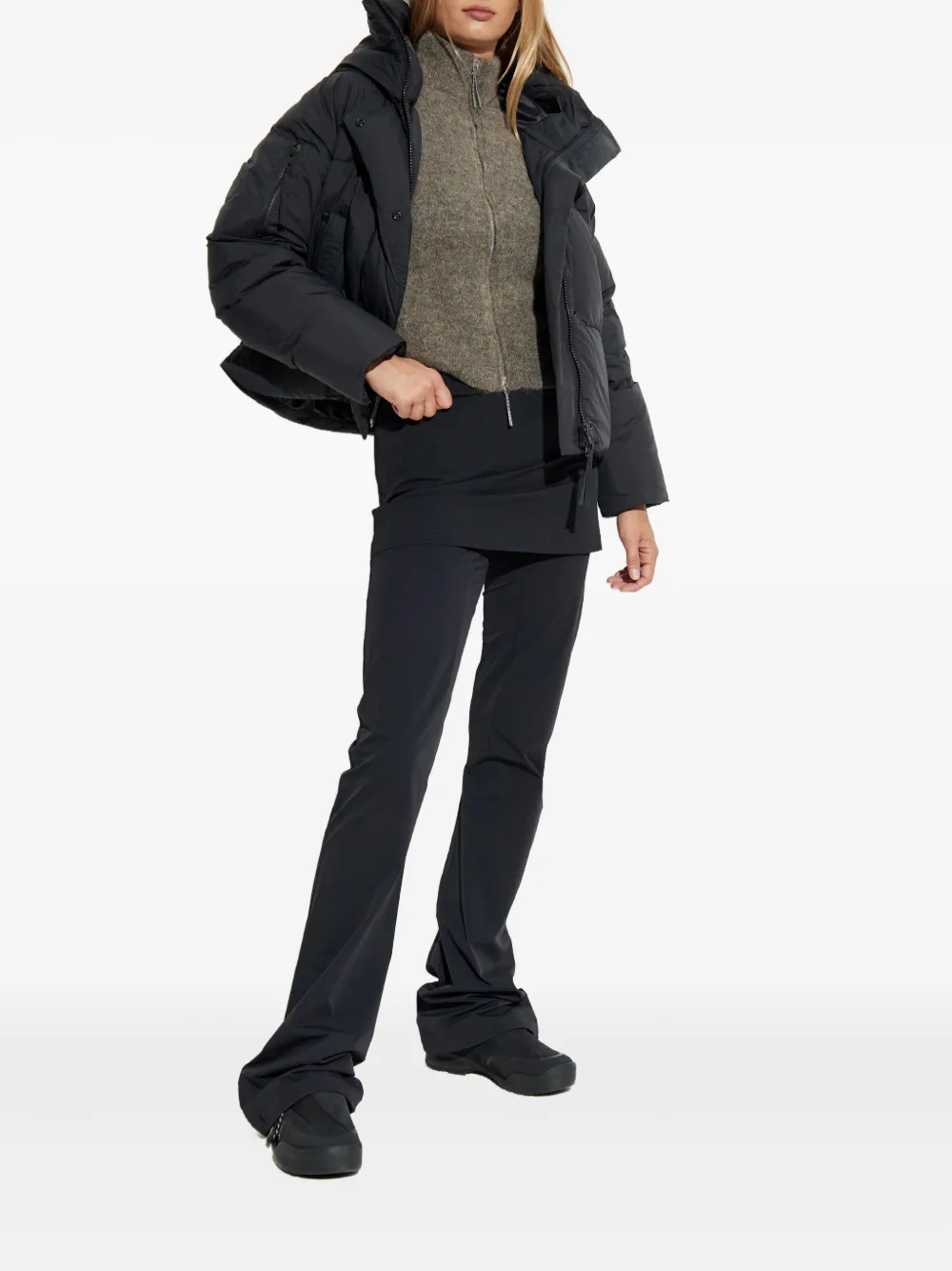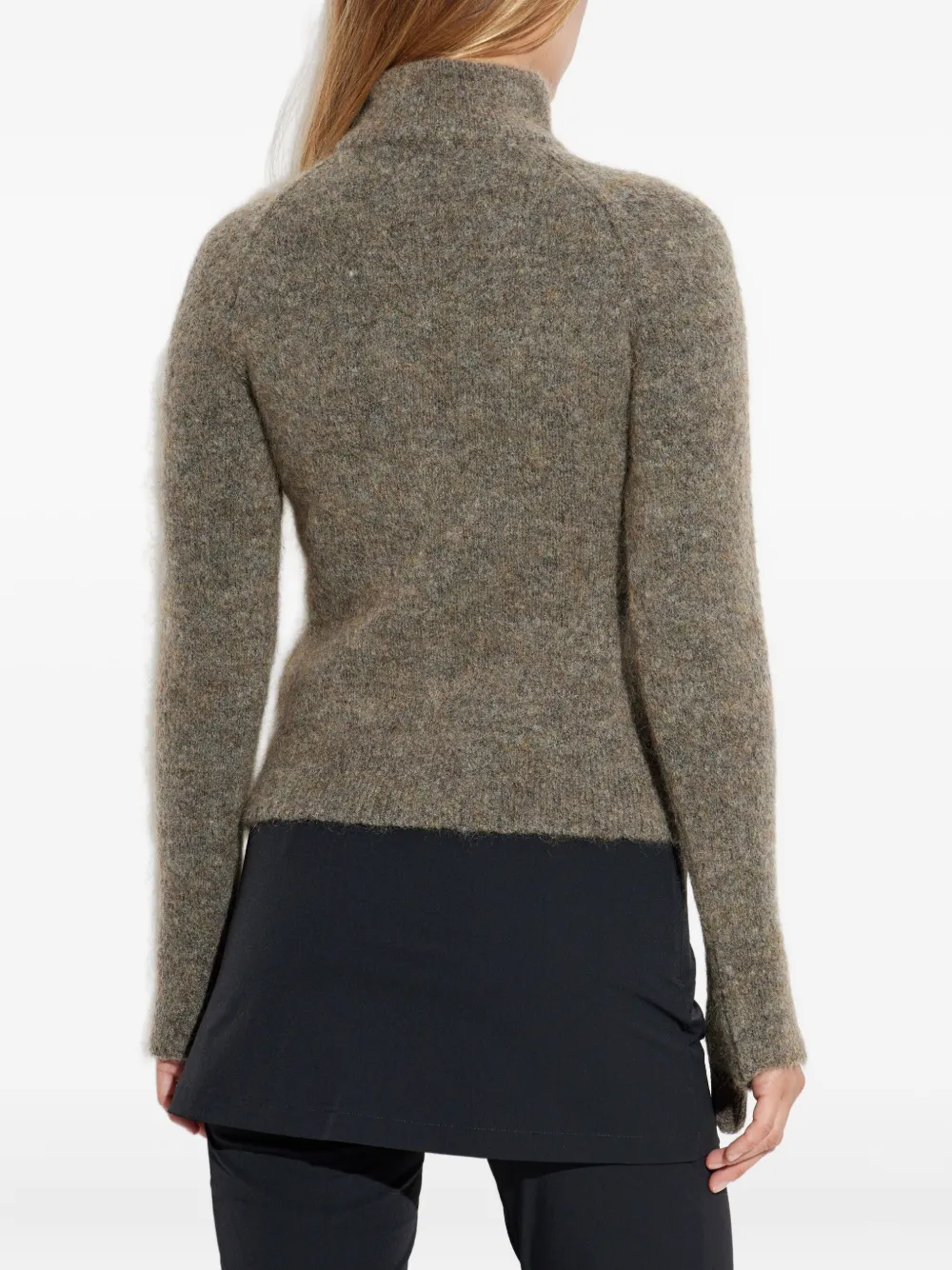 Бежевый высокий воротник на молнии в обе стороны, длинные рукава с прорезями для большого пальца