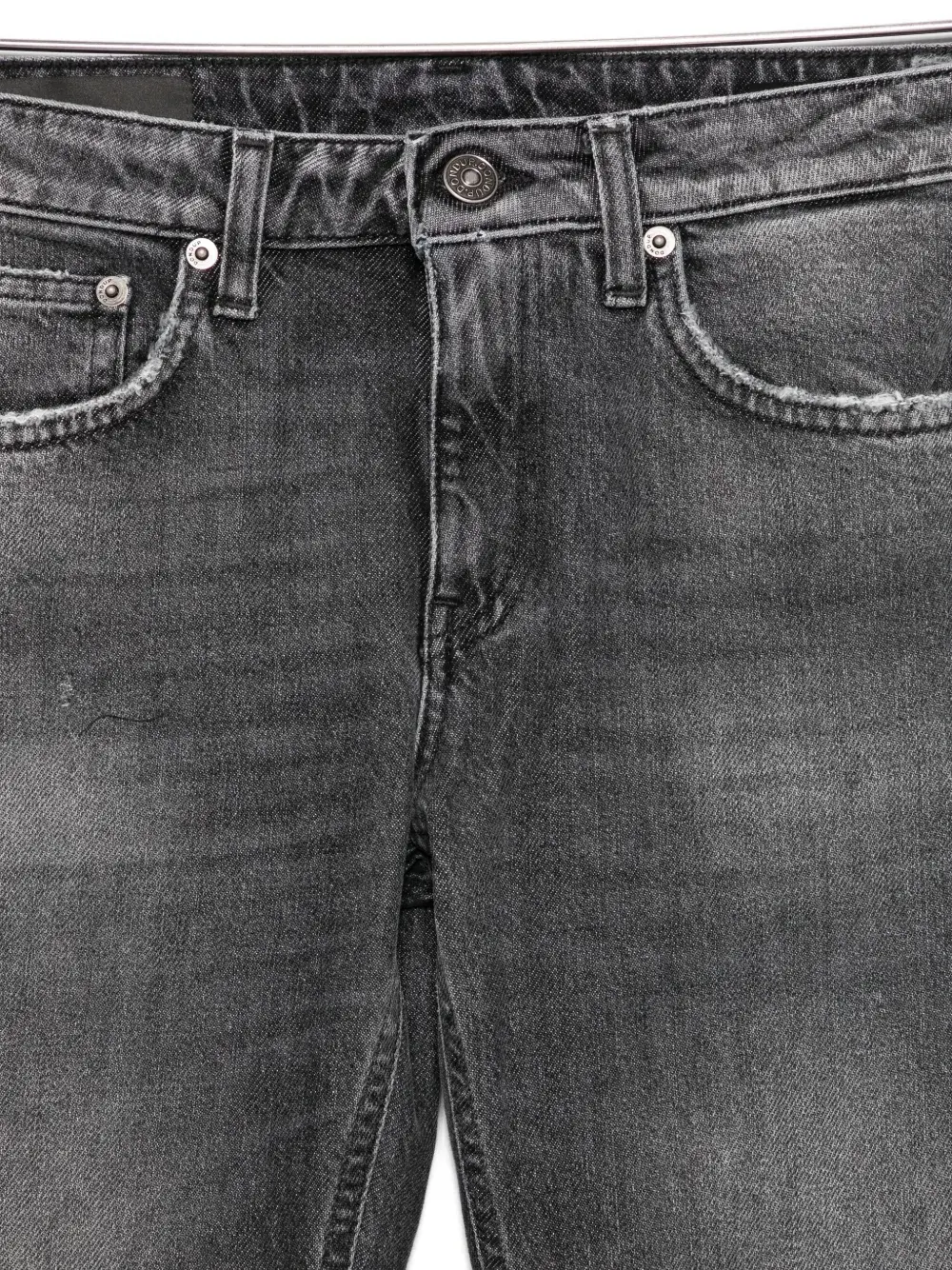 Черный цвет, эффект потертости, необработанный край, пять карманов, шлевки для ремня, застежка на пуговицу и молнию
