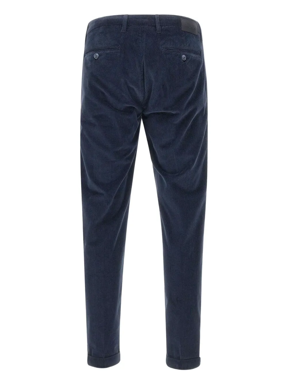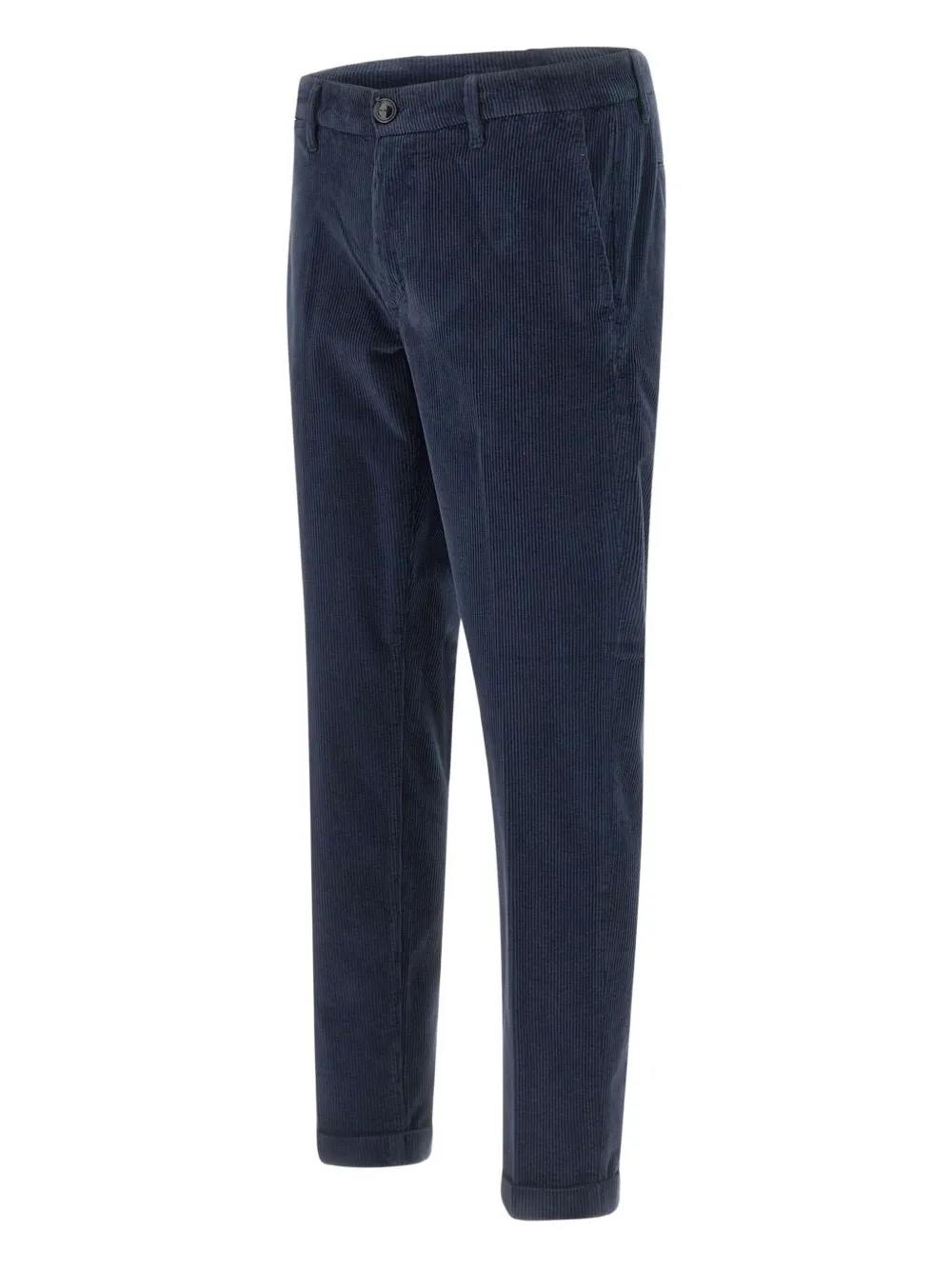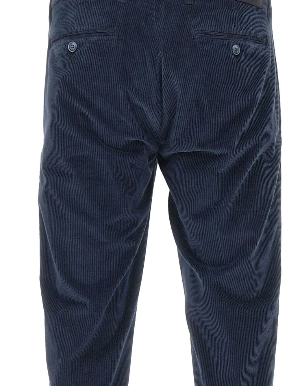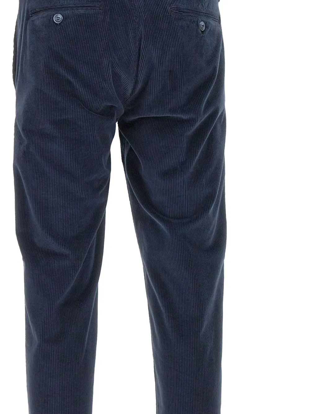 Синяя вельветовая фактура, застежка на пуговицы, задние карманы, боковые карманы, застежка-молния, манжеты на штанинах