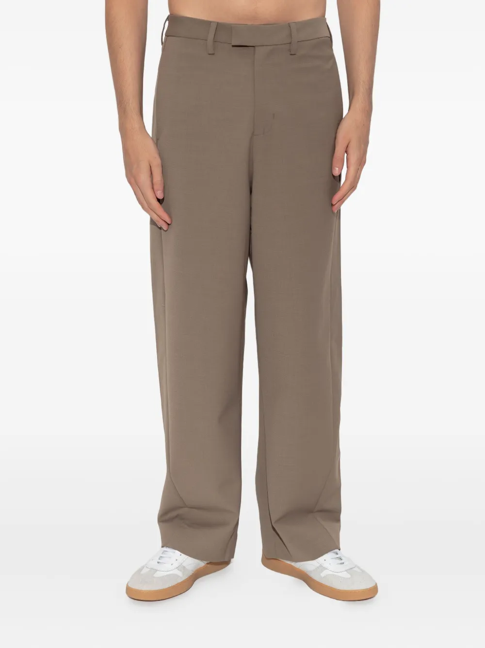 Светло-коричневый, шлевки для ремня, боковые вставные карманы, задние прорезные карманы, скрытая застежка, широкие брючины