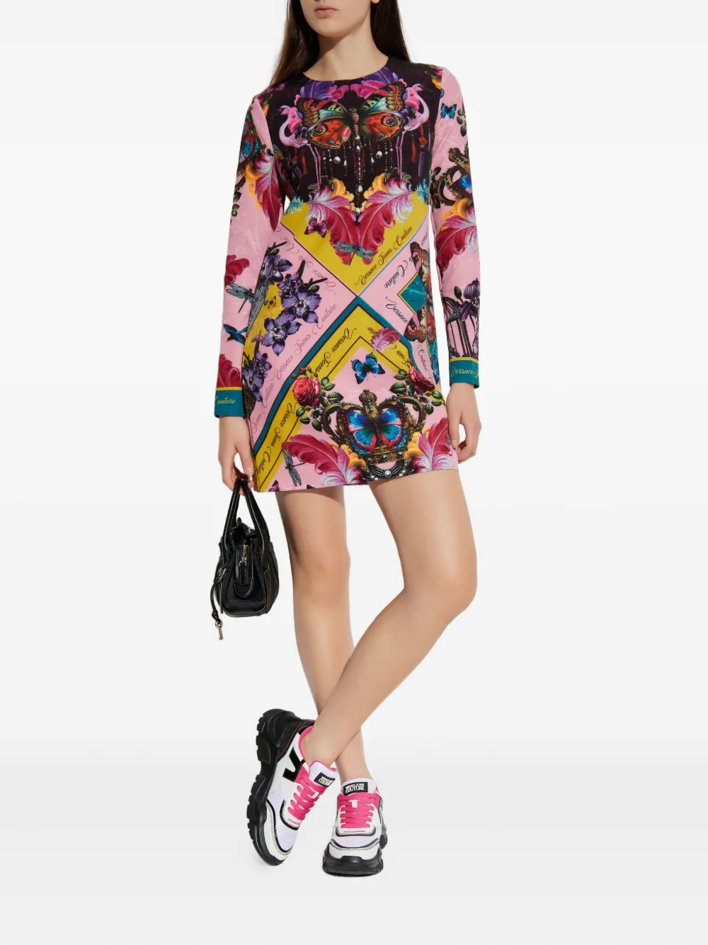 Мини-платье с принтом и длинными рукавами Versace Jeans Couture, розовый 31 214₽