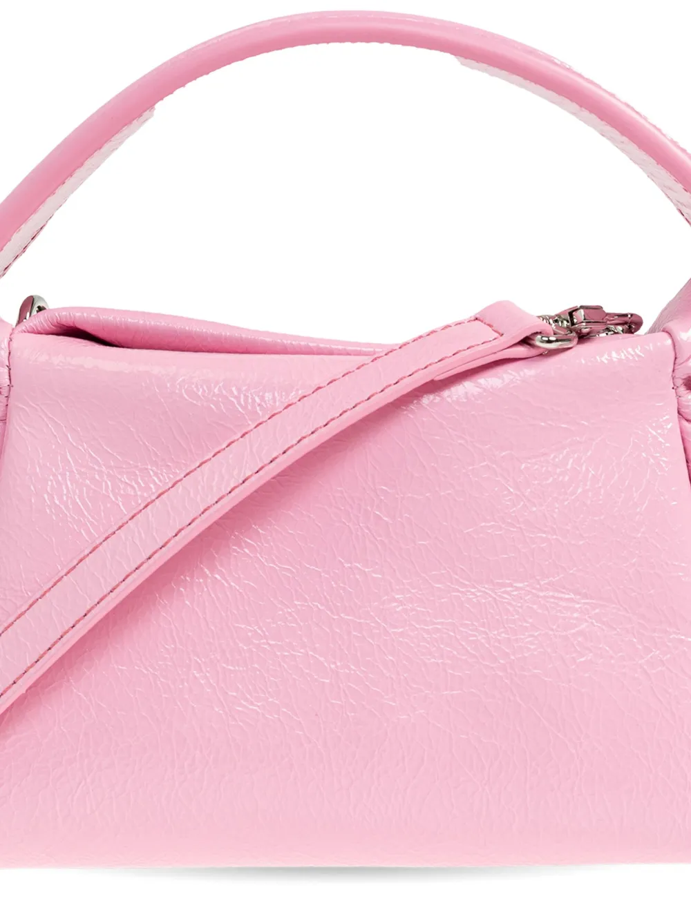 Розовая сумка с ручкой, узлом на ремне через плечо, застежкой-молнией, прямоугольной формы