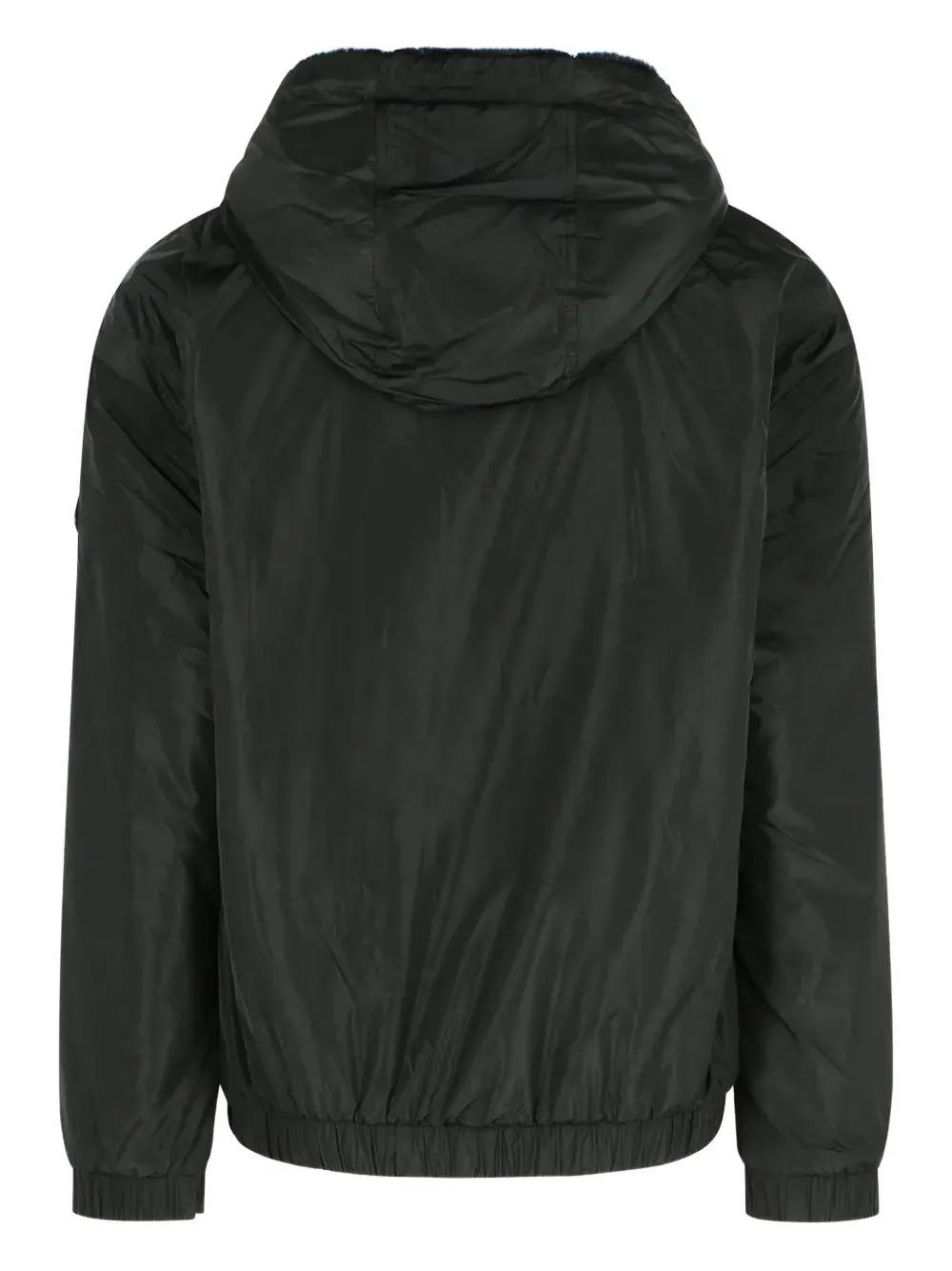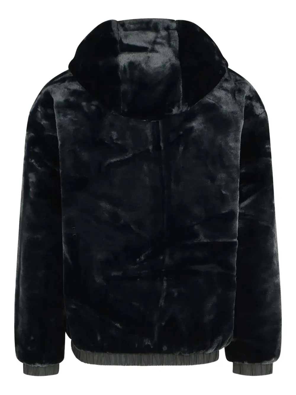 Черная искусственная меховая подкладка, капюшон на шнурке, застежка на молнию, карманы на молнии, эластичный низ