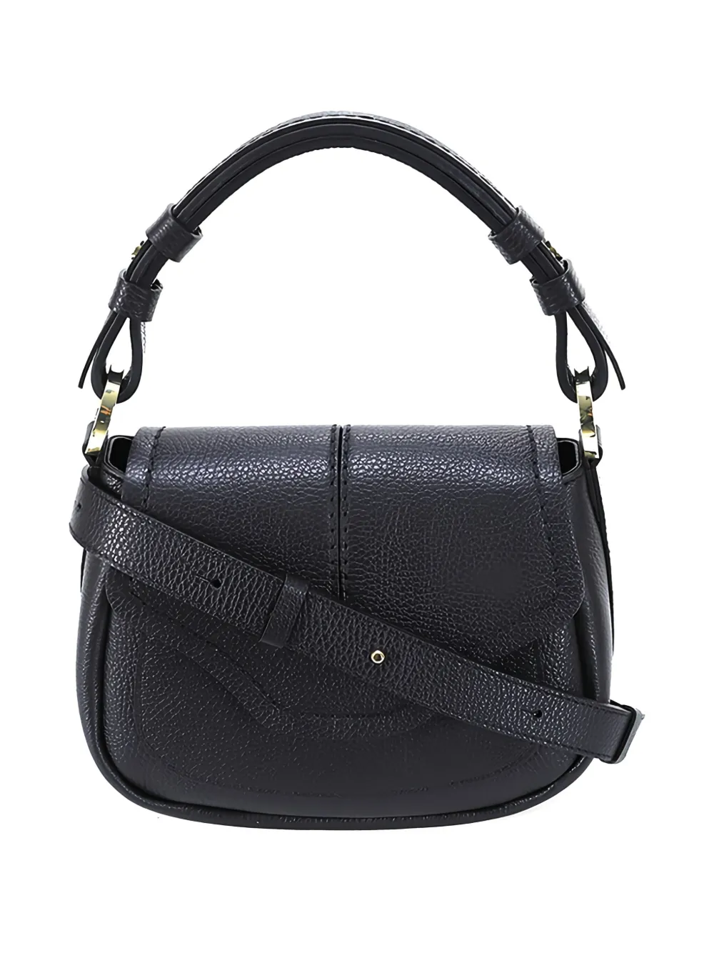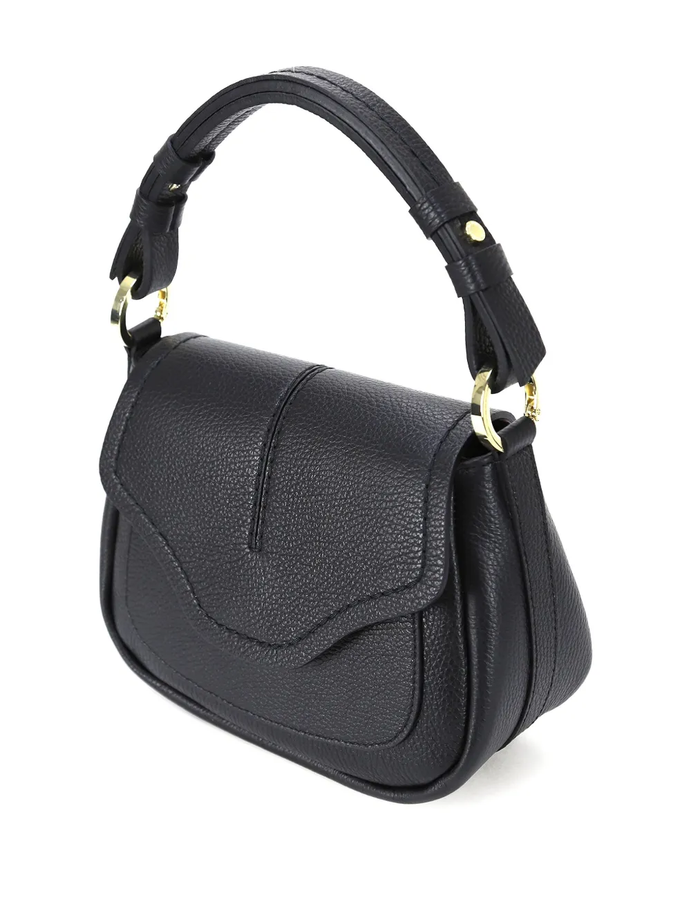 Черная сумка с верхней ручкой, фурнитура цвета золота, регулируемый ремень, клапан-застежка, текстурированная отделка
