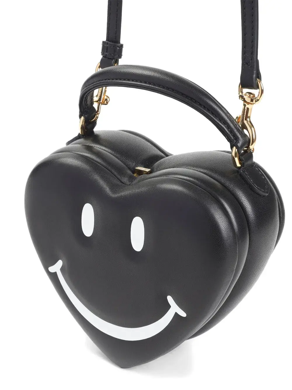 Черная сумка с графическим принтом в форме сердца, верхней ручкой, регулируемым плечевым ремнем и фурнитурой золотистого оттенка