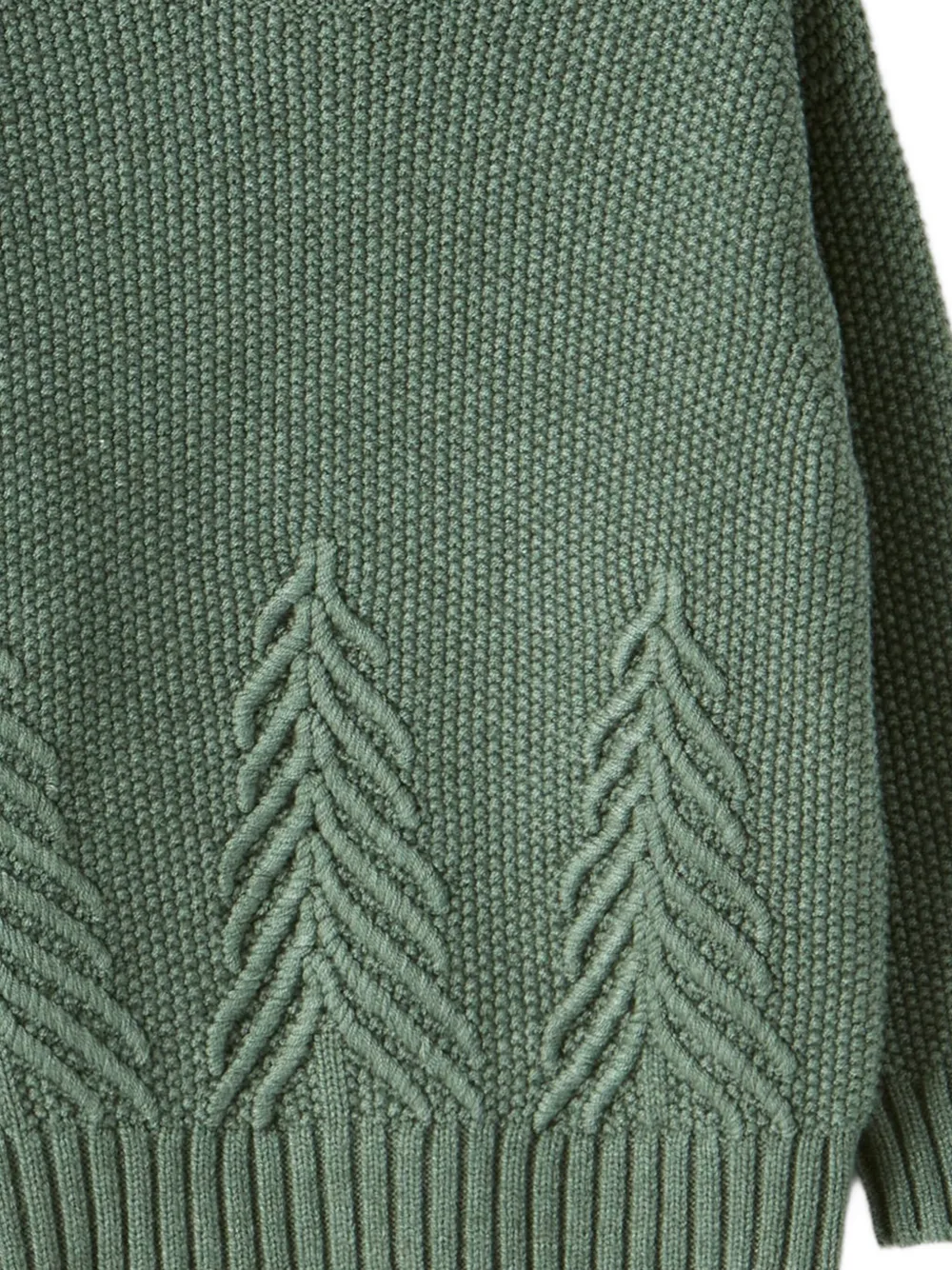 Зеленый джемпер с интарсией, ребристыми манжетами и подолом, круглый вырез